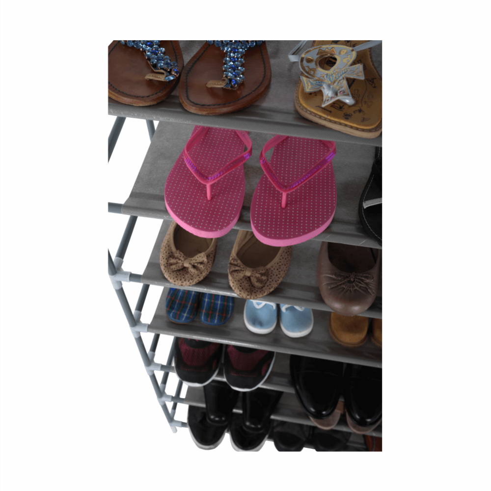 Pořiďte si 10-řadový botník Filou, kde uložíte až 50 párů nových bot. Konstrukce je vyrobena z kovu, jednotlivé police jsou z látky.