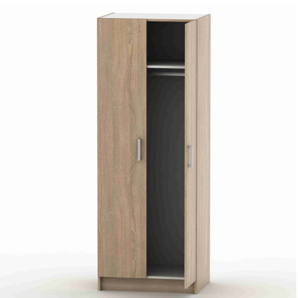 Skříň BETTY 7 BE07-009-00 je vyrobena z kvalitní DTD laminované v barevném provedení dub sonoma. Skříň je dvoudveřová, věšáková. Poskytuje dostatek úložného prostoru. Za dvířky najdete věšákovou tyč na ramínka a nad ní jednu polici.