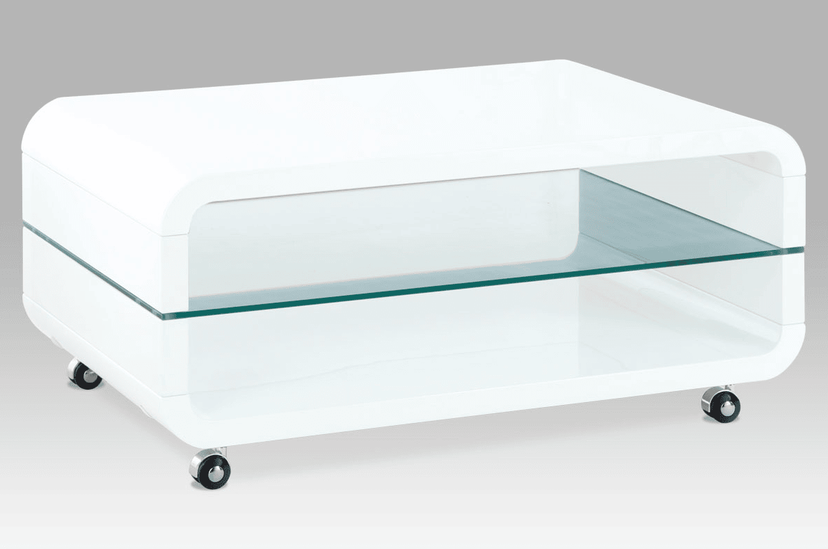 Stůl je vyroben v provedení vysoký bílý lesk, poice je vyrobena z tvrzeného skla.