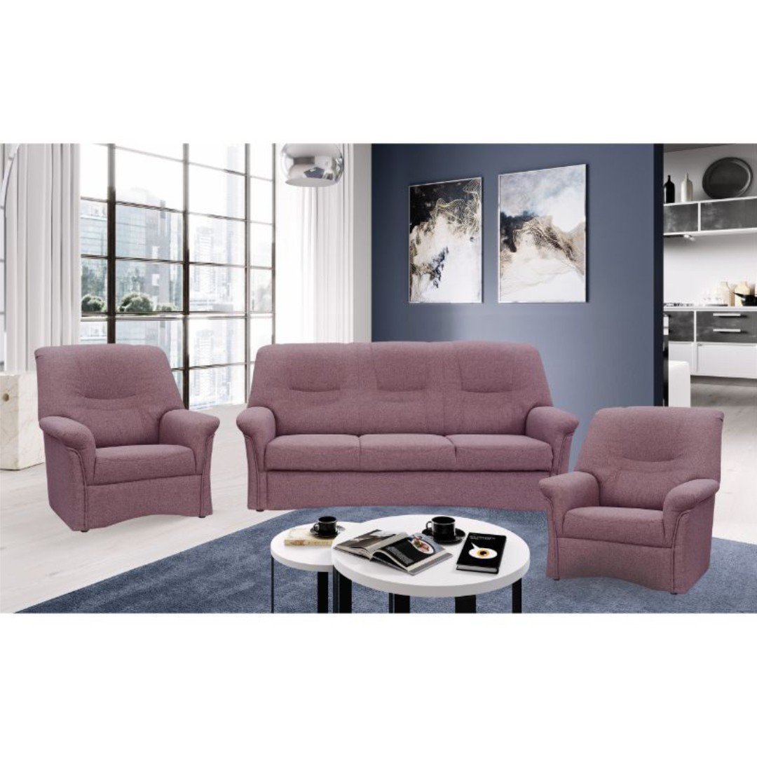 Komfortní klasická sedací souprava Amarila se skládá z pohovky a 2 křesel. Je vyrobená v šedobílém