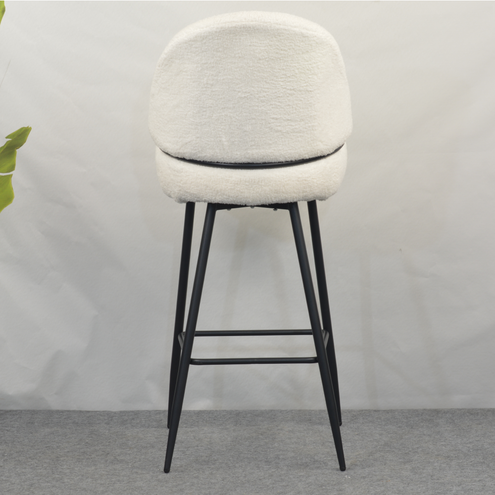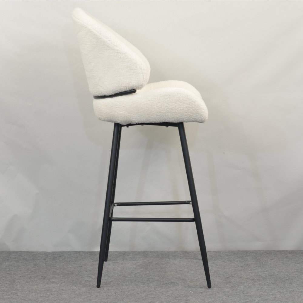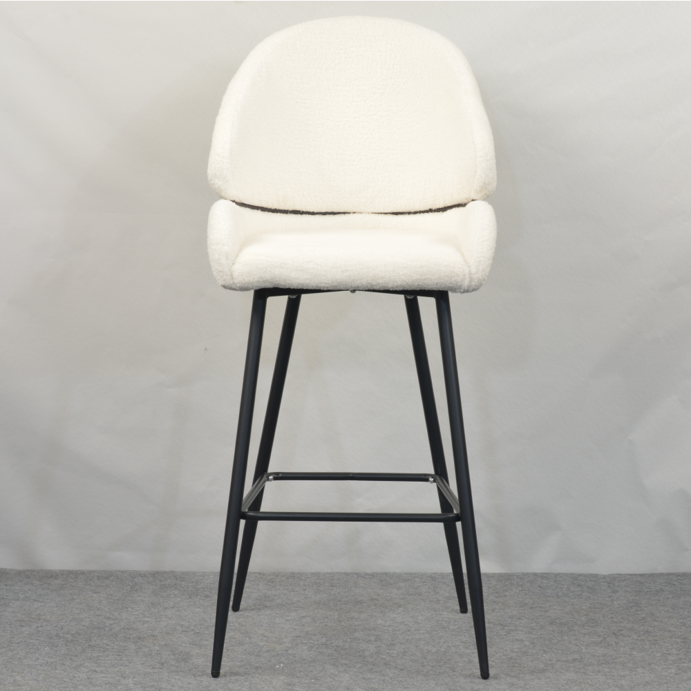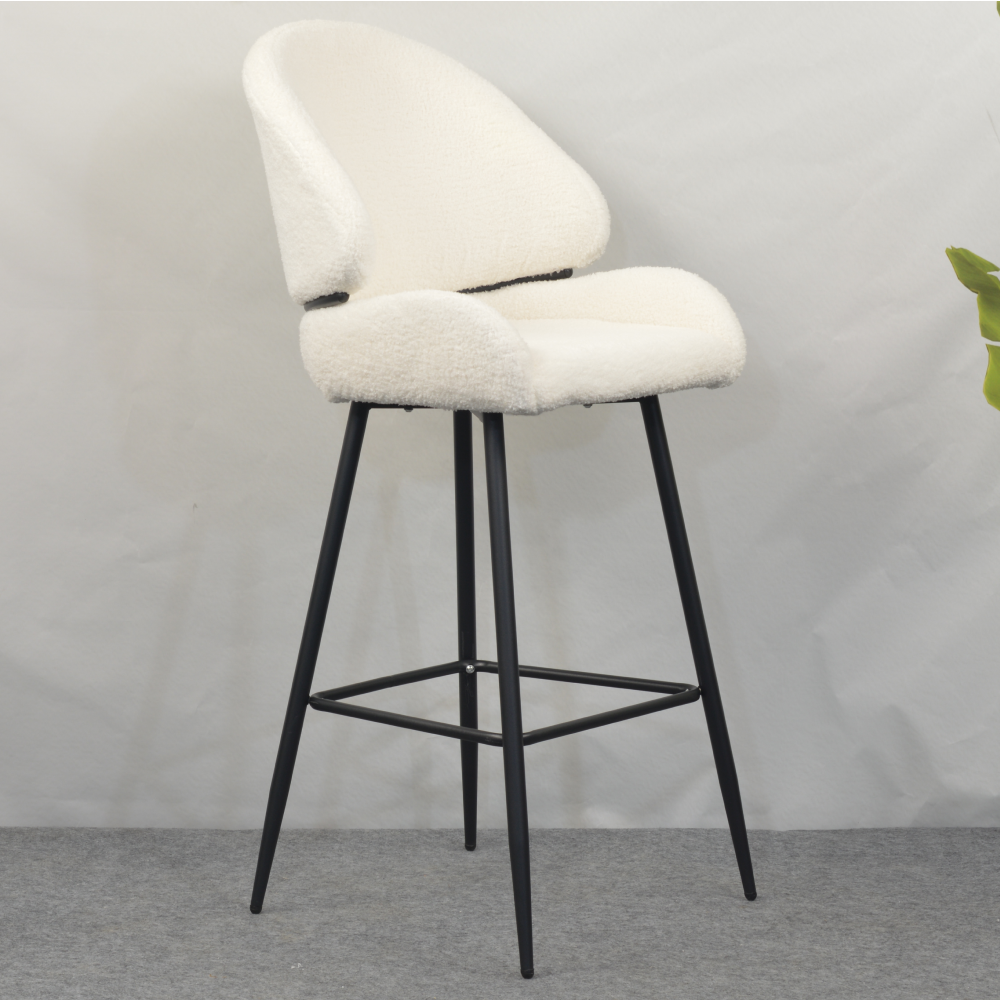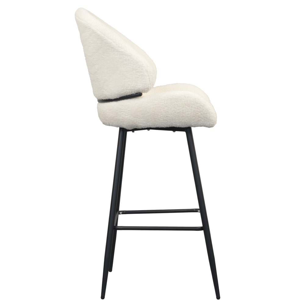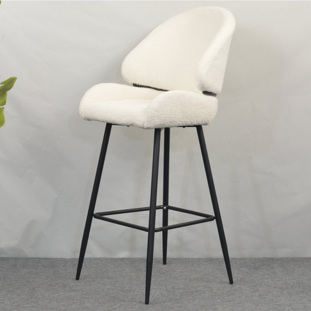 Barová židle SANAKO TYP 2 si získá vaši pozornost už na první pohled. Je dokonalým ztělesněním elegance, pohodlí a moderního designu. Její jemně zaoblené tvary a hebké čalounění z látky Bouclé v bílé barvě vytvářejí luxusní a útulný dojem. Kontrastní černé kovové nohy dodávají židli stabilitu a zároveň moderní šmrnc, díky čemuž se stává výrazným, ale stále harmonickým prvkem vaší jídelny či kuchyně. SANAKO TYP 2 působí svěže, moderně, útulně a je jako stvořená pro stylové a pohodlné stolování v domácím prostředí či v elegantních interiérech.