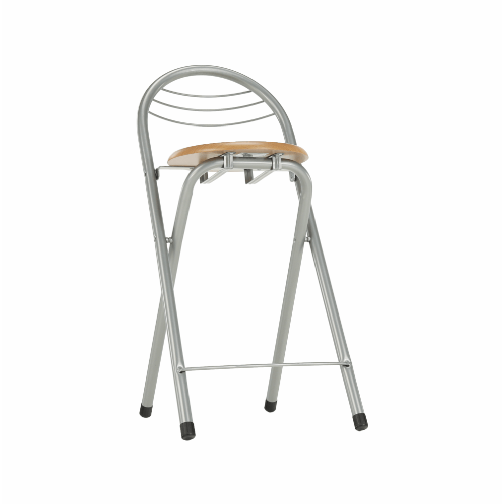 barová židle, kov s povrchovým nátěrem aluminium v kombinaci s dřevem, odstín dřeva buk, průměr 39 cm, výška sedu: 60 cm. Rozměr židle (ŠxHxV): 36x44x80 cm Nosnost židle: 80 kg Dodávané v monte.