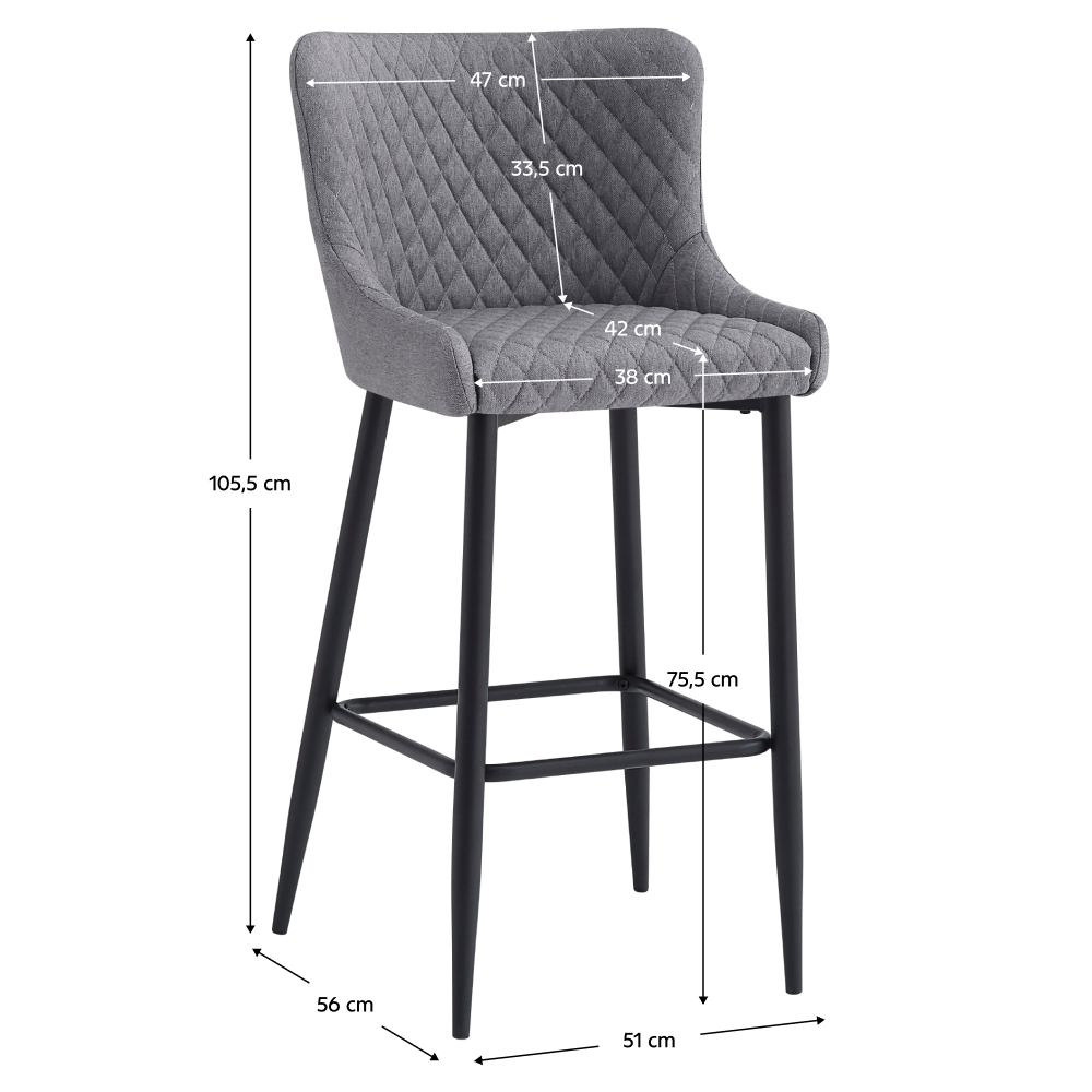 Materiál: látka/kov Oděruodolnost textilie podle testu Martindale: 65 000 oděrů Barva: šedá/černá Rozměry (ŠxHxV): 50,5x57x104,5 cm Výška sedu: 75,5 cm Hloubka sedu: 50 cm Šířka sedu: 47 cm Šířka zádové opěrky: 47 cm Výška zádové opěrky: 29 cm Nosnost: 100 kg Hmotnost: 8,6 kg Dekorativní prošití…