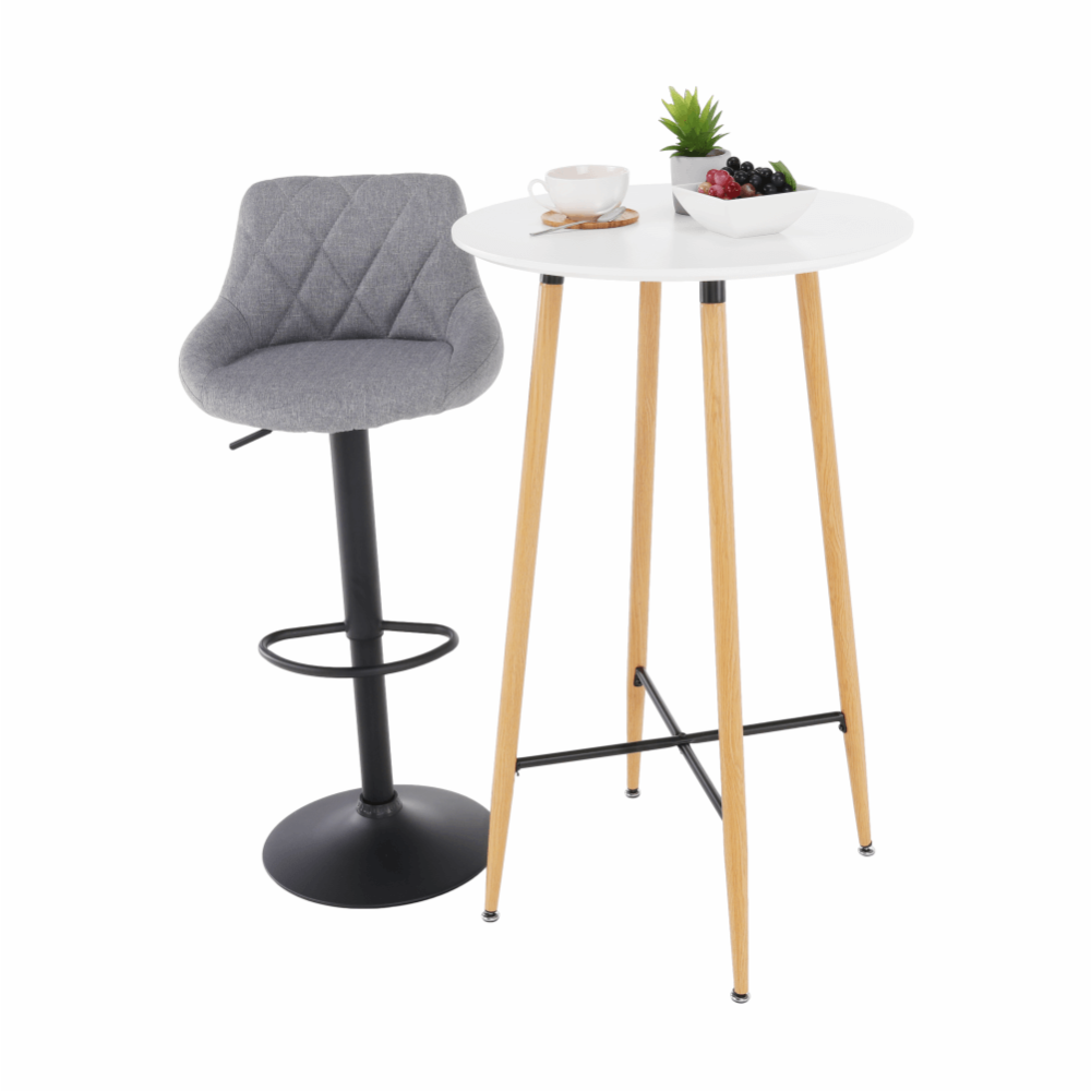 Barový stůl IMAM Materiál: MDF / kov Provedení: bílá / dub Rozměry (PriemerxV): 60x102 cm Dodávané v demontu
