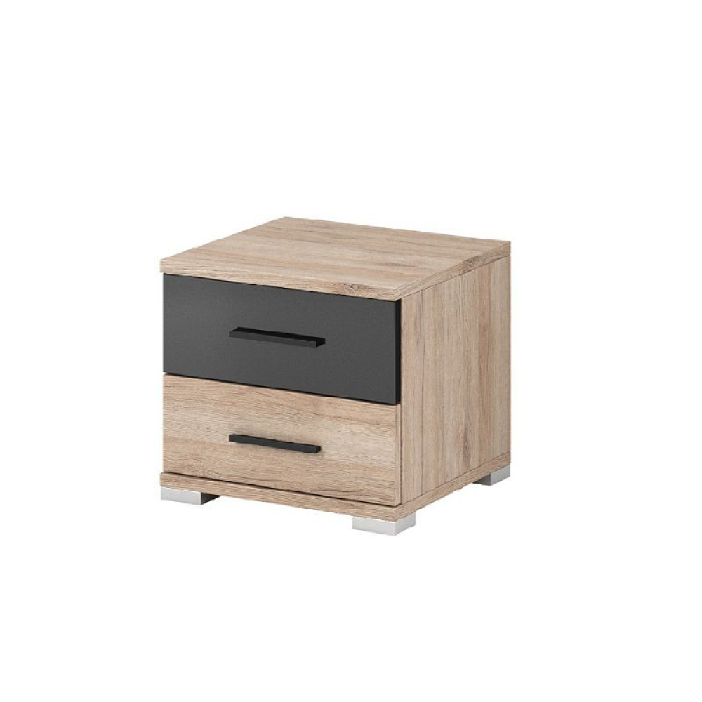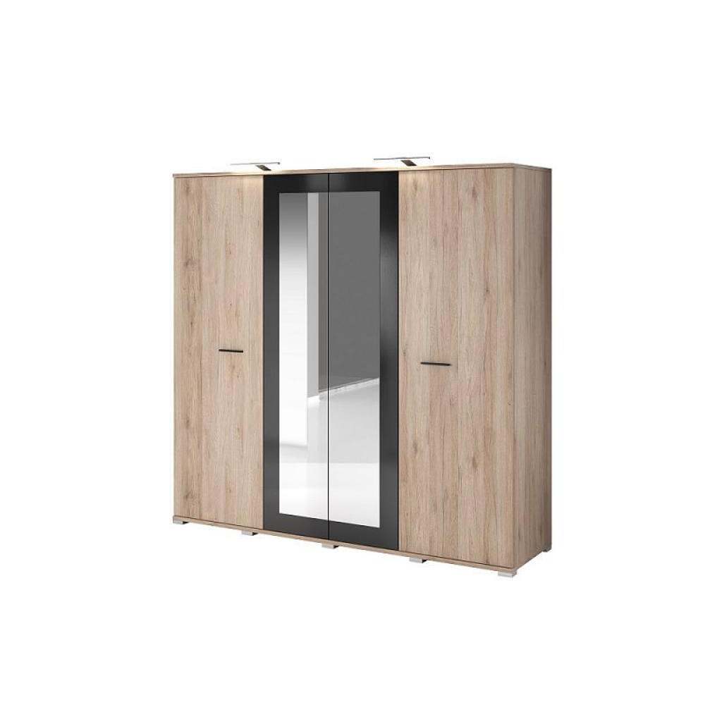 Prostorná šatní skříň Baunti Ba 20 je vyrobena z lamina v barevném provedení dub san remo pískový/černý lesk.