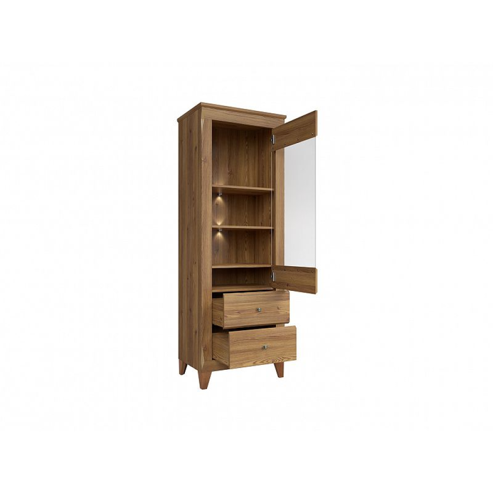 Dopřejte vašemu obývacímu pokoji praktickou a stylovou ozdobu v podobě krásné vitríny Bergen REG1W2S. Dvě poličky za proskleným dvířkem jsou ideálním místem pro uložení vašich oblíbených knižních titulů, vystavení sbírek, dekorací nebo suvenýrů. Dále jistě oceníte užitečnost dvou šuplíků, které skryjí hravě vše, co chcete mít zároveň pěkně po ruce.