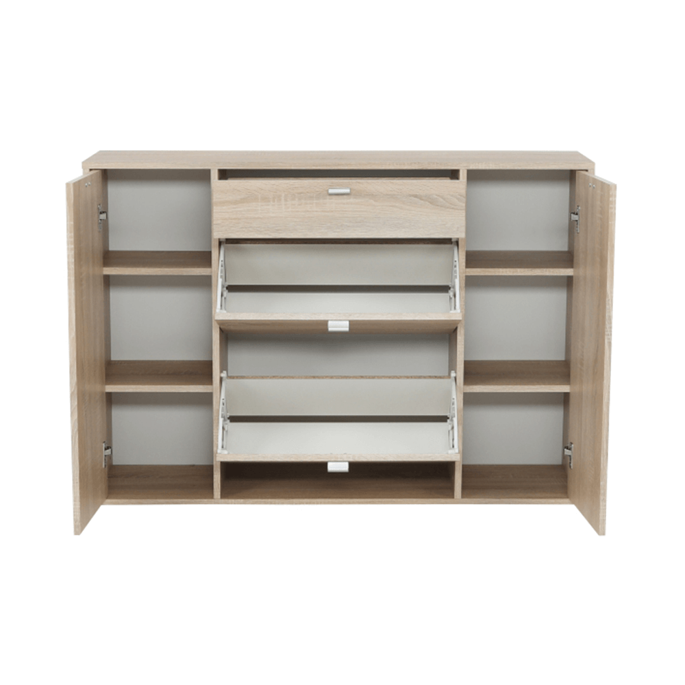 Kombinace 2 postranních skříněk a 3 zásuvek zaručí, že v předsíni uschováte obuv ale i čepice, rukavice či další sezonní oblečení.
