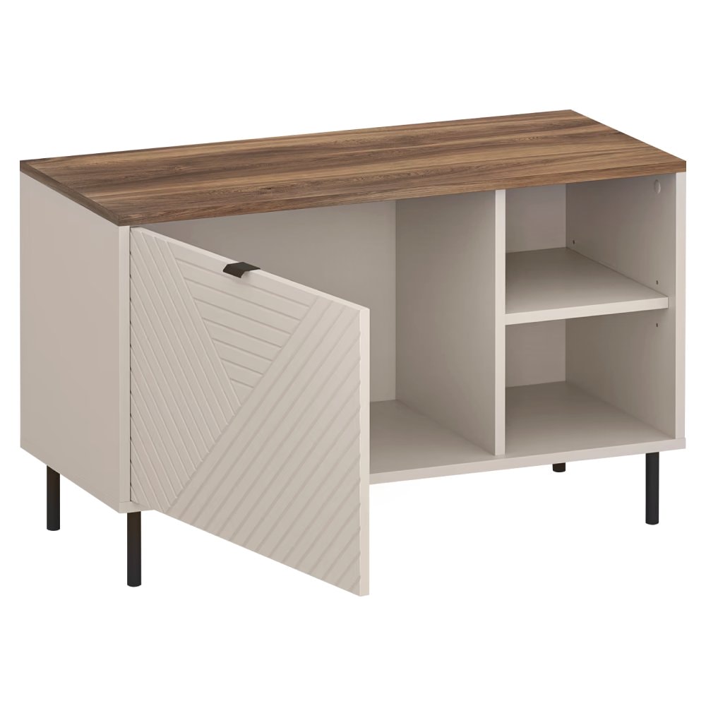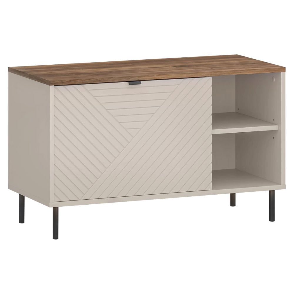 Materiál: laminovaná DTD/fóliovaná MDF/ABS hrany Barva: kašmír/dub castello Rozměry (ŠxHxV): 90x40x55,1 cm Tloušťka materiálu: 1,6 cm Jednodveřový Jedna skříňka Otevřený úložný prostor Police S úchyty Materiál úchytek: kov Barva úchytek: černá Na nožičkách Materiál nožiček: kov Barva nožiček: černá…