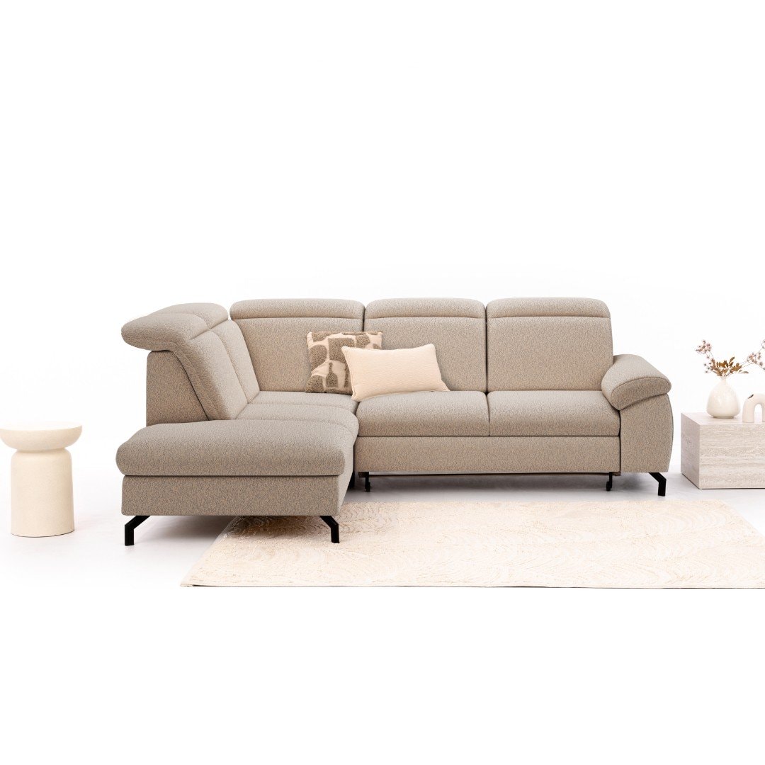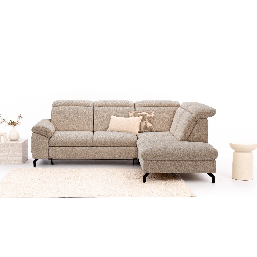 Sedací souprava CARMELO je čalouněna smetanovou látkou Misterio 07. Rohové provedení je levá (z pozice sedícího). Čalouněna jsou také záda. Vhodné k umístění do prostoru.