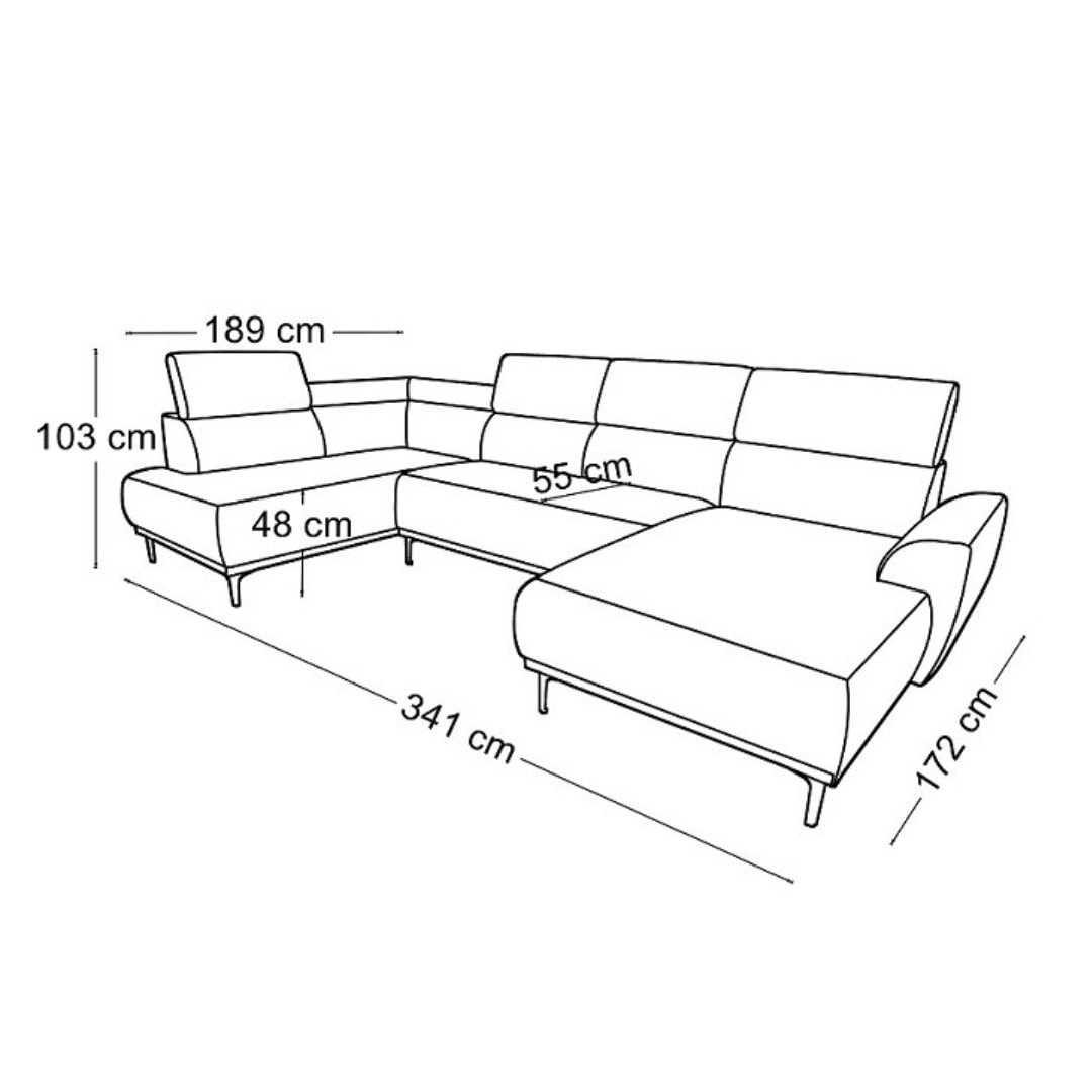 Šířka 341 cm Výška 103 cm Hloubka 189 cm