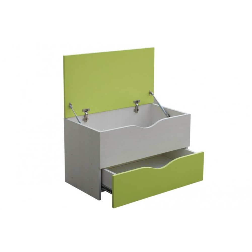 - Truhlice vhodná na hračky je opatřena kolečky (2x kolečka s brzdou), což umožňuje snadné přemístění v prostoru