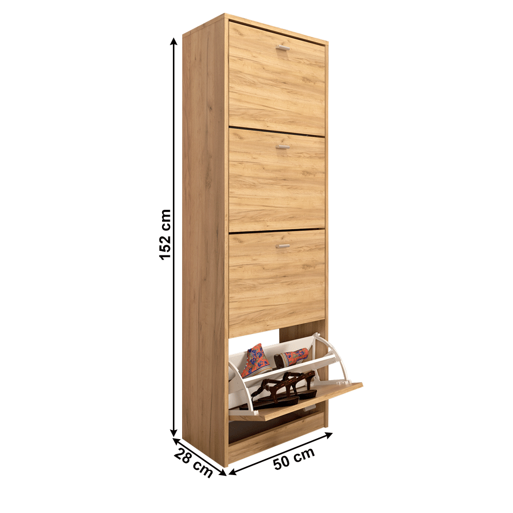 Materiál: DTD laminovaná Barva: artisan Rozměry (ŠxHxV): 50x28x152 cm Tloušťka materiálu: 16 mm Čtyři výklopné úložné prostory Kvalitní slovenský výrobek Dodávané v demontu