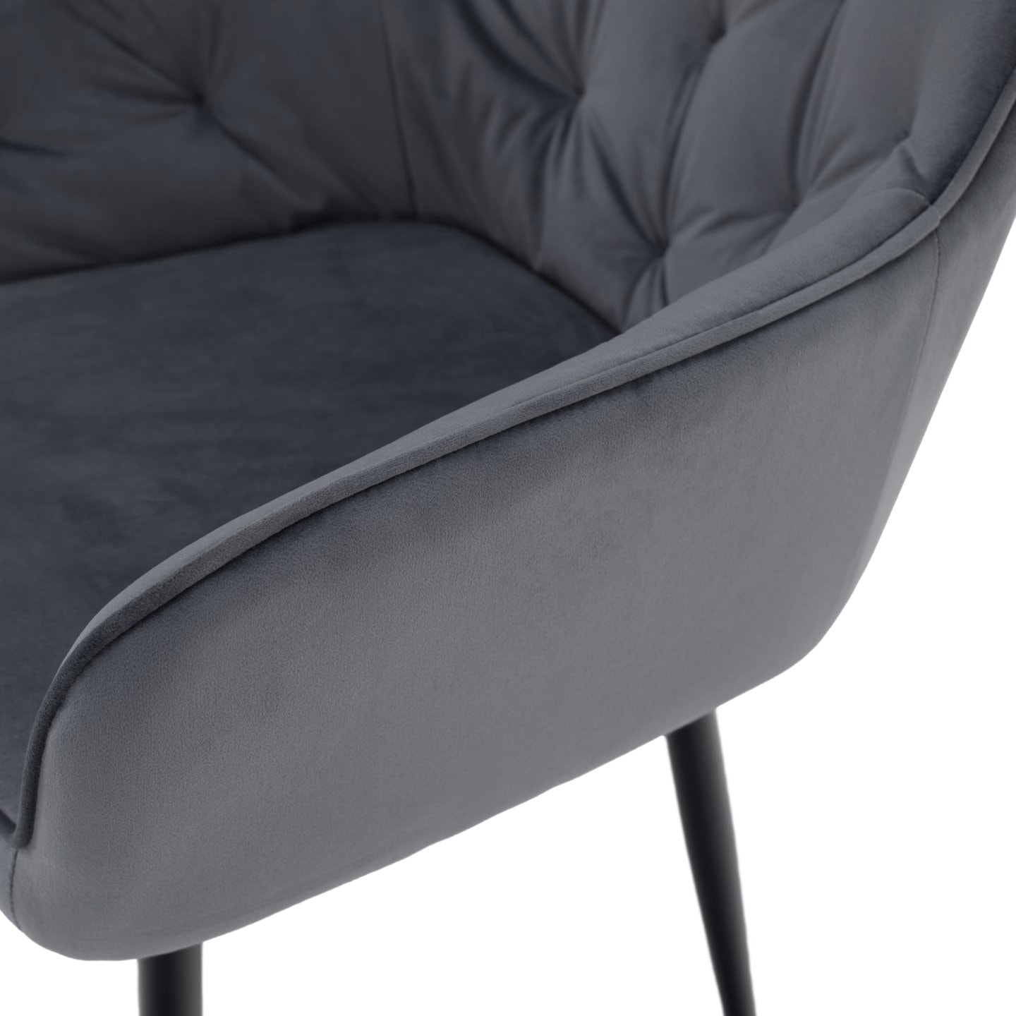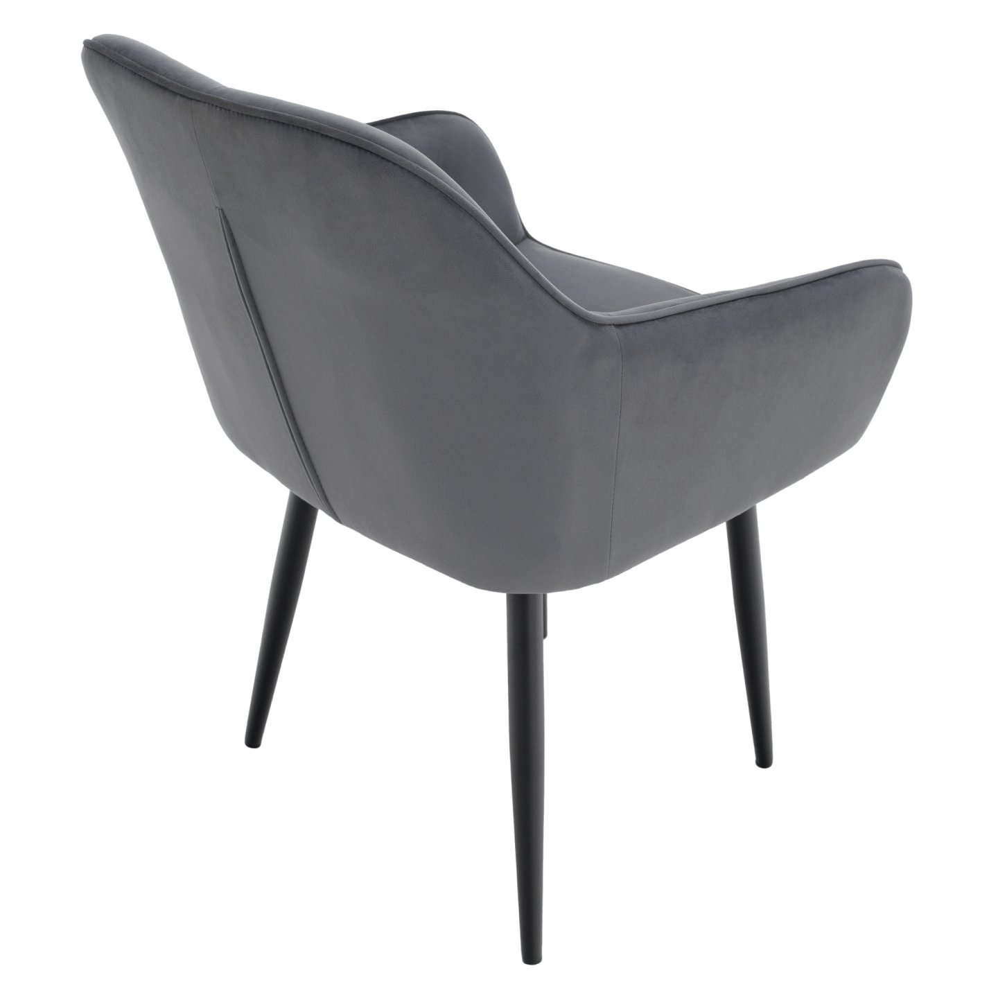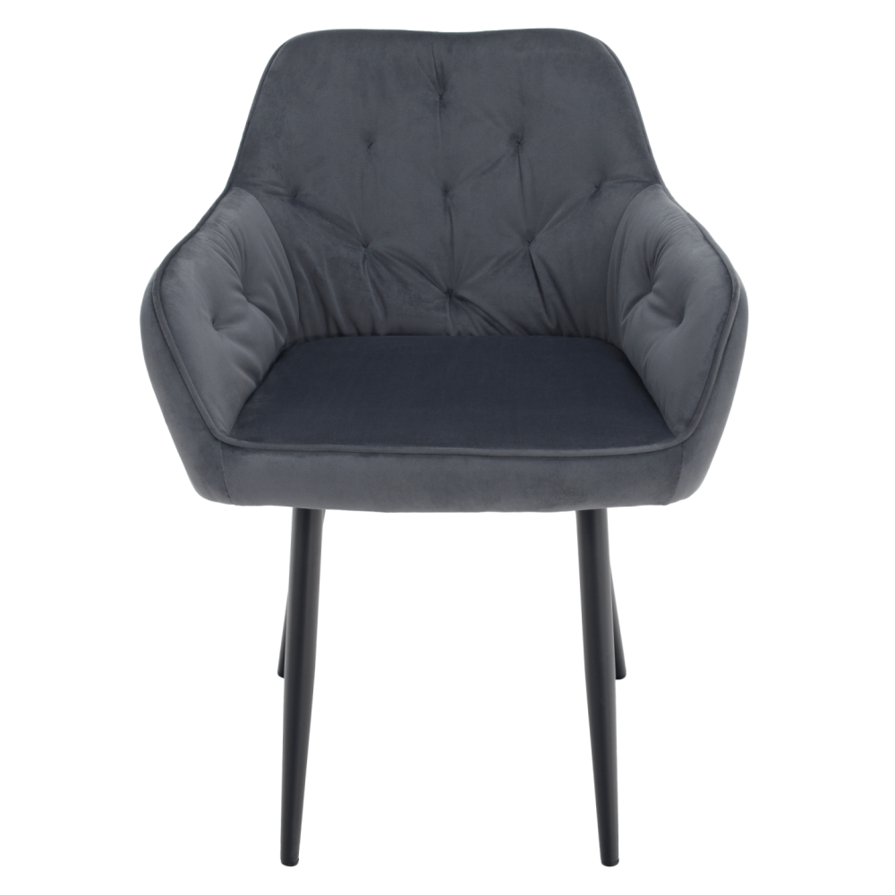 Čalouněné je sametovou Bluvel látkou v odstínu šedé Velvet. O stabilitu křesla se postarají černé kovové nohy. Na komfortu sezení se spolupodílejí opěrky na ruce a opěrka zad. Opěrky na ruce a zádová část jsou navíc dekorativně prošity. Vynikne v jakémkoli interiéru.