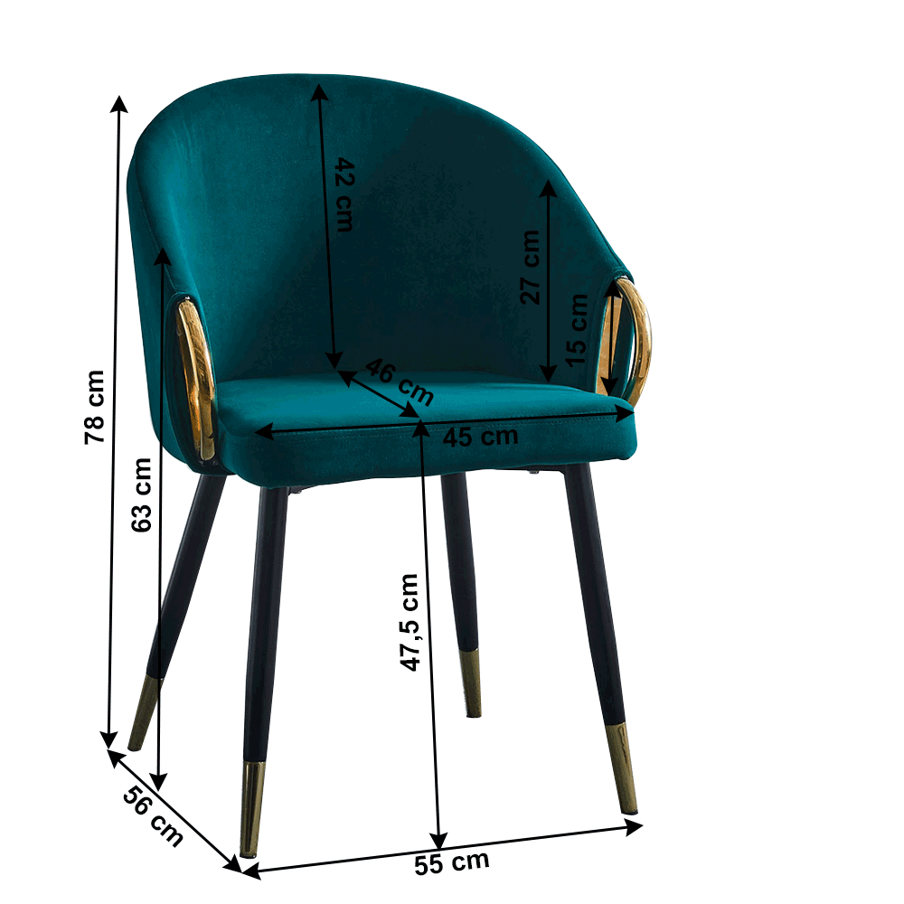 Upoutá vás svým designem i detailním zpracováním. Výsledkem je skvost, vyrobený ze smaragdové velvet látky, s pohodlným opěradlem se zlatými chromovými područkami a stabilními kovovými nohami černé barvy, na konci potaženy také gold zlatým chromem. Díky kvalitnímu materiálu zaručuje dlouhou životnost. Moderní a komfortní křeslo dokonale zapadne do interiéru kuchyně, jídelny, kavárny či stylové restaurace. V křesle Donko si s oblibou můžete přečíst noviny, vychutnat svoušálek kávy či skvělý oběd s milovanou polovičkou.