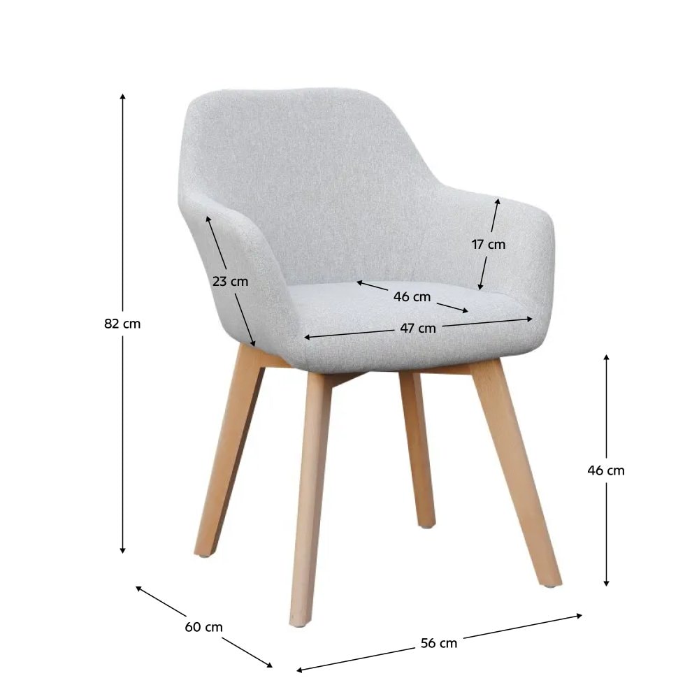 Designové křeslo CLORIN NEW Materiál: látka / dřevo Oděruodolnost textilie podle testu Martindale: 85 000 oděrek Barva: světlešedá / buk Rozměry (ŠxHxV): 56x60x82 cm Výška sedu: 82 cm Hloubka sedu: 46 cm Vnitřní loketní opěrka: 17 cm Venkovní loketní opěrka: 23 cm Nosnost: 100 kg Dodávané v demontu.