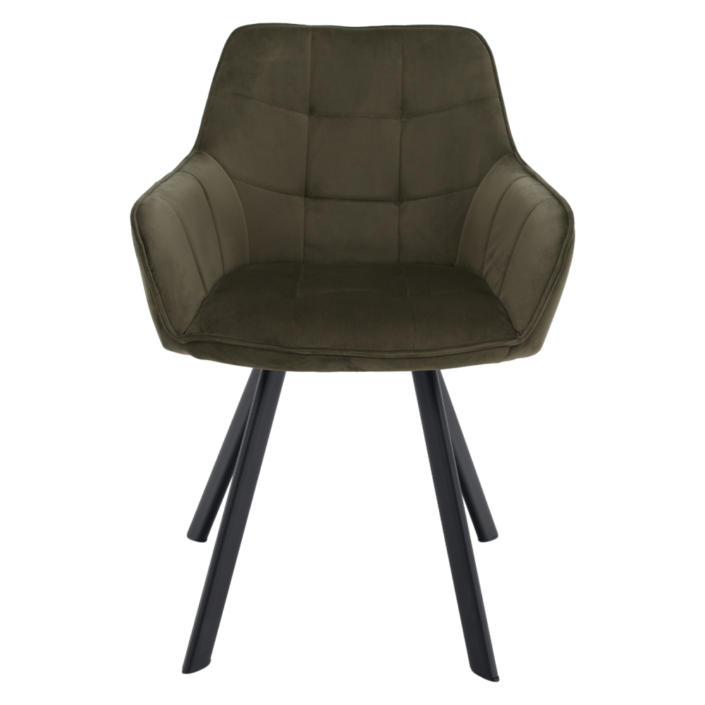 Materiál: látka Bluvel 77/kov Oděruodolnost textilie podle testu Martindale: 80 000 oděrů Barva: zelená Velvet / černá Rozměry (ŠxHxV): 58,5x62x84,5 cm Výška sedu: 50,5 cm Hloubka sedu: 47 cm Šířka sezení: 42,5 cm Výška zádové opěrky: 39 cm Nosnost: 90 kg Designové S měkkou sedací částí Dekorativně…