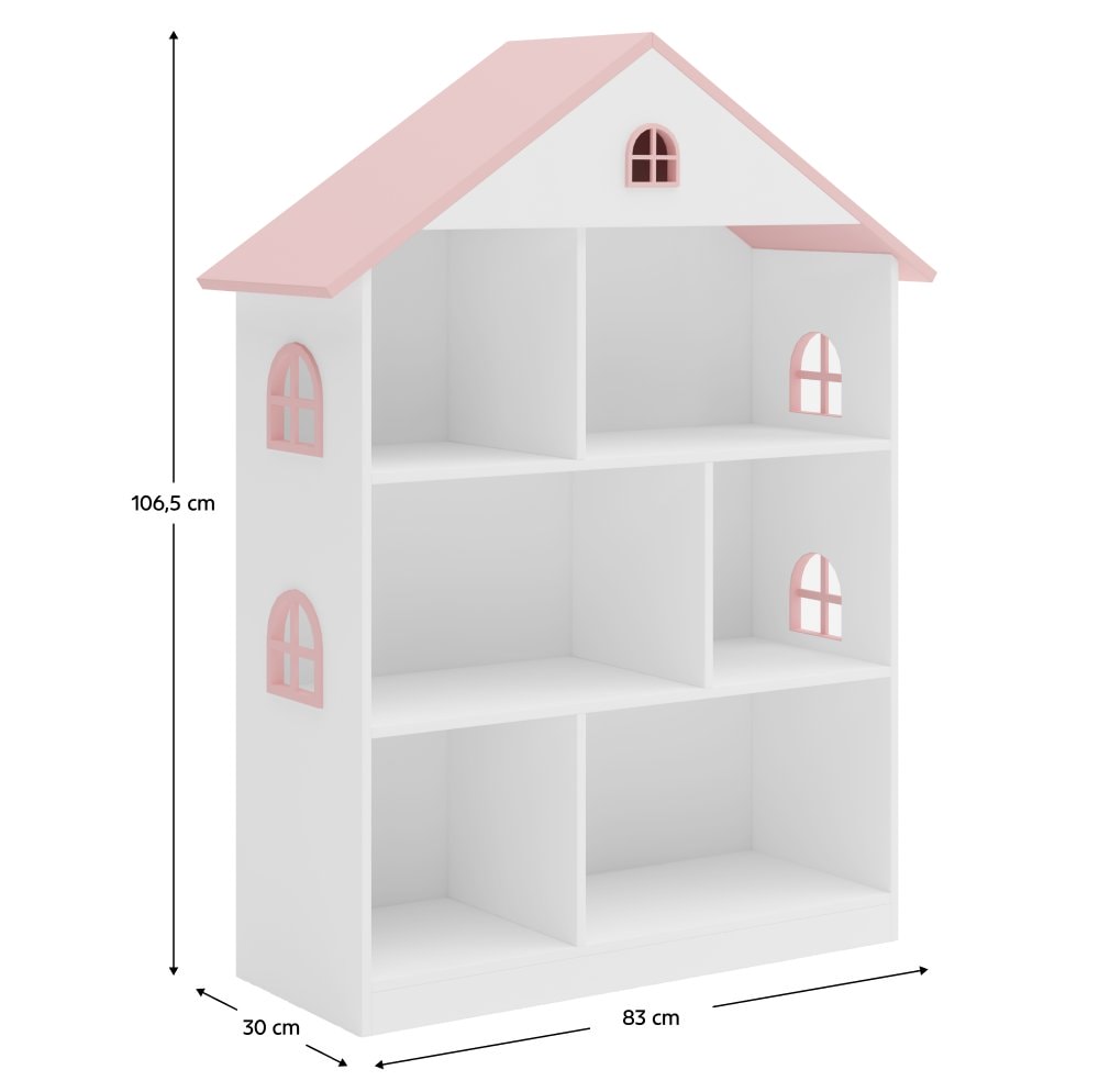 Dětská knihovna MAISON TYP 1 ve tvaru pohádkového domku je originálním a praktickým doplňkem dětského pokoje, který si zamilují nejen děti, ale i rodiče. Spojuje funkčnost s hravým designem a přináší do interiéru radost, barvy a v neposlední řadě i pořádek. Díky kombinaci bílé a růžové barvy působí jemně, něžně a harmonicky zapadne do dívčích pokojů či pastelových interiérů. Knihovna je vyrobena z kvalitního MDF materiálu s certifikátem CE, který zaručuje stabilitu a dlouhou životnost. Nabízí spoustu úložného prostoru pro knihy, oblíbené hračky, dekorace či jiné drobnosti, které děti potřebují mít po ruce. Otevřený úložný prostor v podobě polic podporuje samostatnost a kreativitu dětí, které si mohou knížky nebo předměty ukládat podle vlastní fantazie. Dětská knihovna MAISON TYP 1 přemění každý pokoj na kouzelné místo plné fantazie.