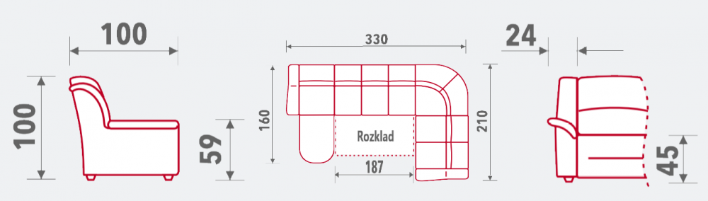 BarvaŠířka (cm)Výška (cm)Hloubka / délka (cm)Výška sedu (cm)Hloubka sedu (cm)Materiál konstrukceMateriál nožičekMateriál sedákuČalouněníFunkce