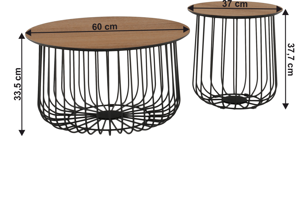 Větší stolek (průměr x V): 60x33,5 cm