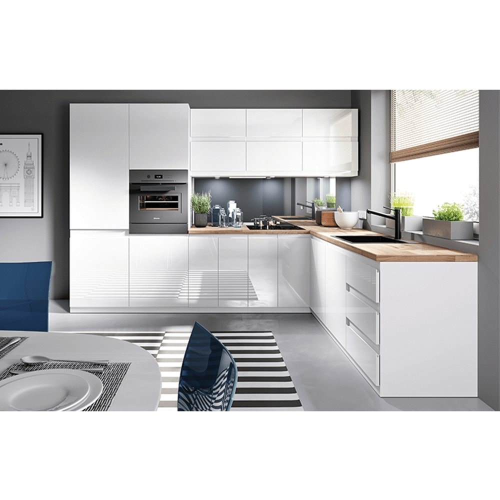Extra vysoký lesk předních dvířek vnese do kuchyně světlo a jas. Dvířka skříněk jsou vyrobeny z kvalitní MDF, korpus z laminované DTD. Vybírat můžete z množství typů skříněk, což umožňuje poskládat si kuchyňskou linku podle vlastních potřeb, možností a požadavků. Spodní skříňky jsou dodávány včetně soklu. Pracovní deska není součástí skříněk. Je možné si doobjednat pracovní desku v provedení dub lefkas tmavý tloušťky 38 mm která je k této kuchyni doporučována.