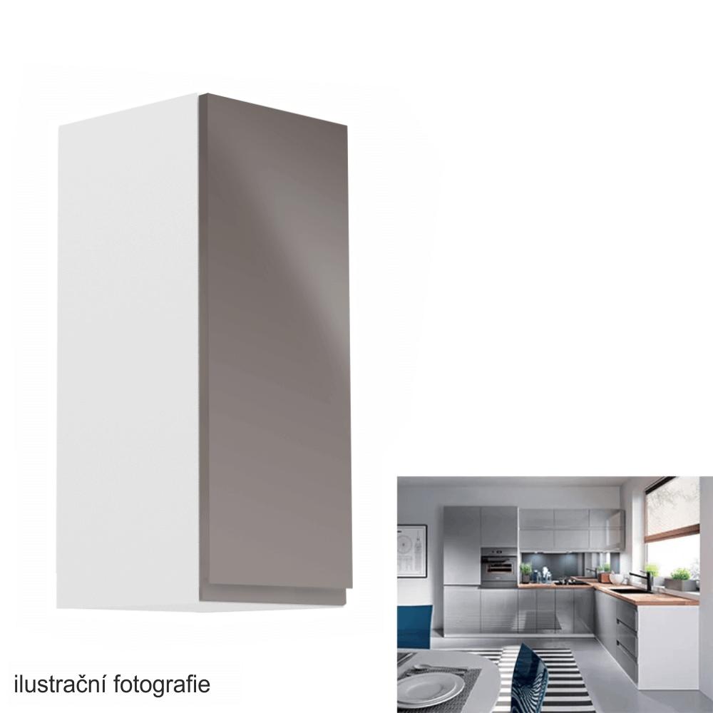Horní skříňka, bílá / šedý extra vysoký lesk, pravá, AURORA G30