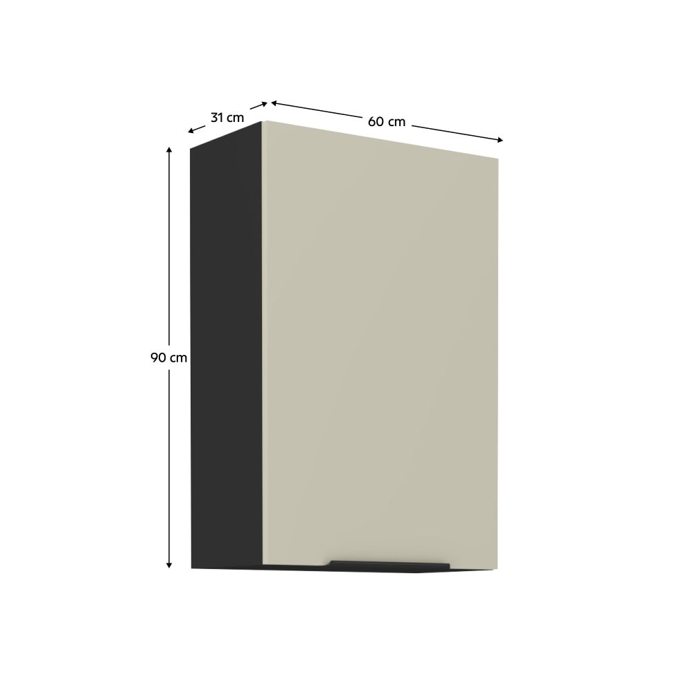Horní skříňka ARAKA 60 G-90 1F je s dvířky v kombinaci cashmere s černou.