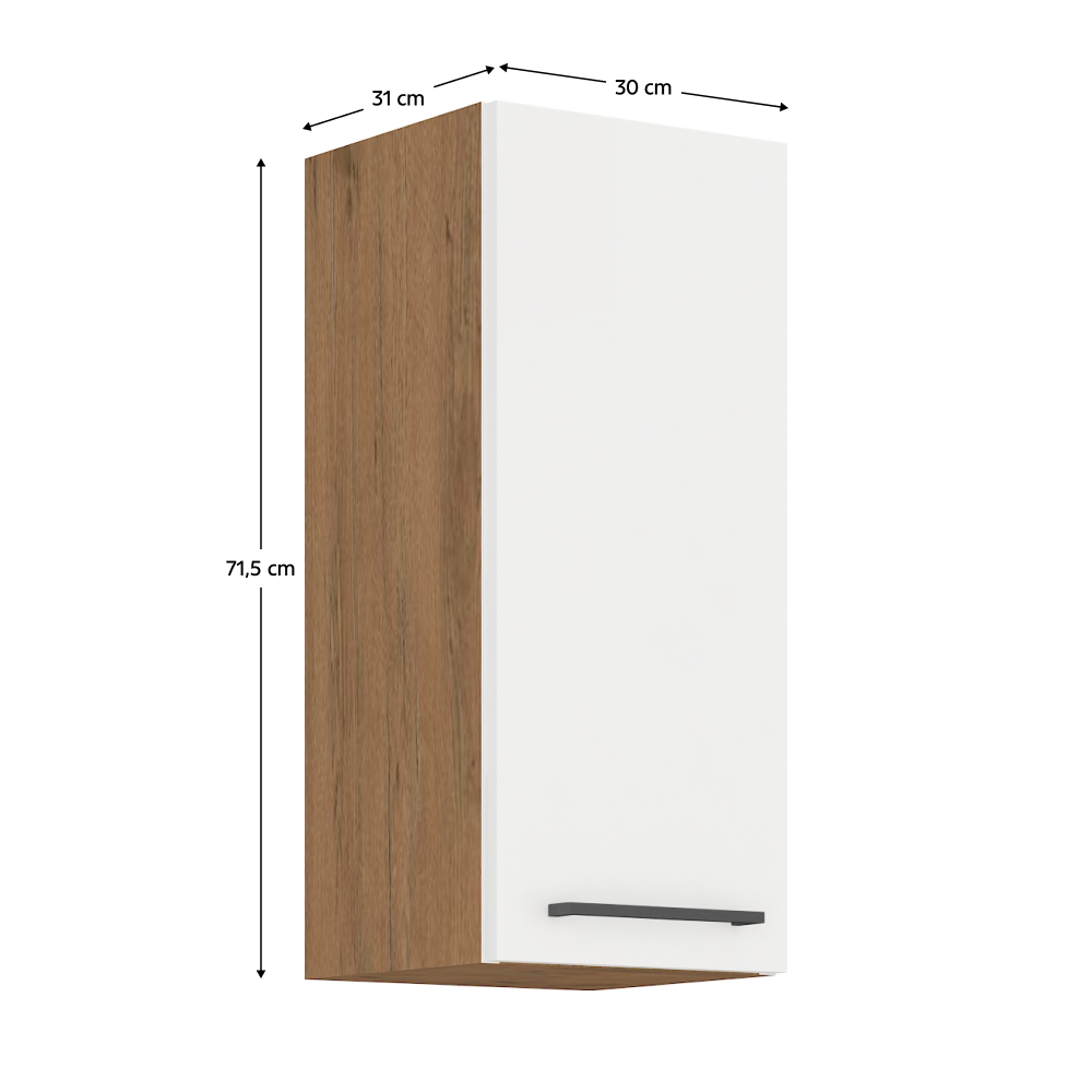 Horní skříňka 30 G-72 1F je s dvířky. Pyšní se systémem tichého zavírání dvířek. Uvnitř najdete jednu polici.