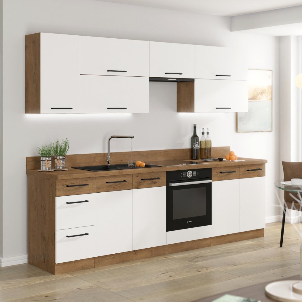 Horní skříňka VEGA 60 Nagu-36 1F Materiál: DTD laminovaná / MDF Barva: dub lancelot / bílá extra vysoký lesk HG Rozměry (ŠxHxV): 60x57x36 cm Dodávané v demontu Spodní skříňky jsou dodávány včetně dolní lišty, bez pracovní desky. Možnost dokoupit pracovní desku dub lancelot v ceně: 1590 Kč/bm.…