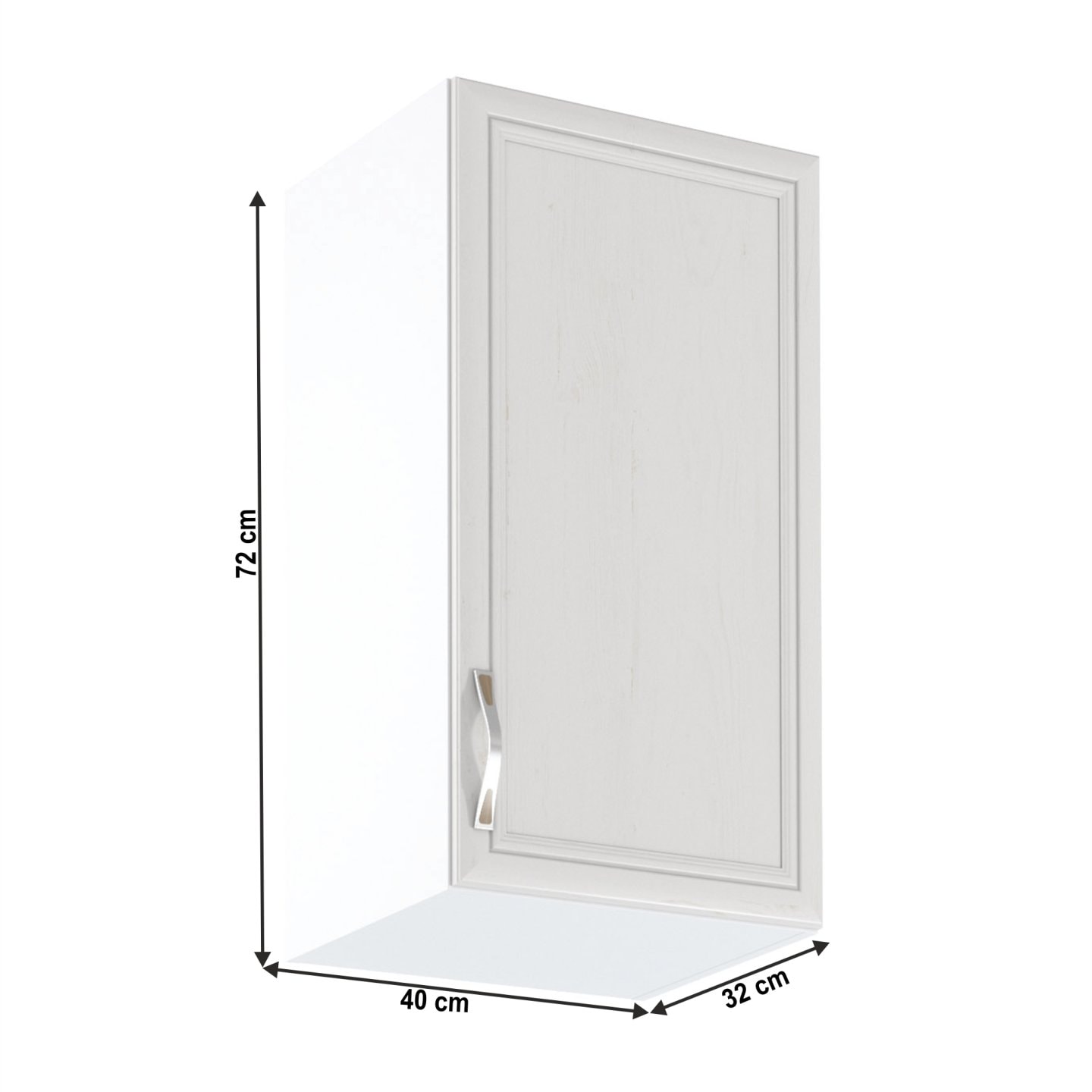 Horní skříňka G40 pravá ke kuchyni SICILIA Provedení: DTD laminovaná/MDF lišty Barva: bíla/sosna Andersen Rozměry (ŠxHxV): 40x32x72 cm Tloušťka materiálu: 15 mm Spodní skříňky jsou dodávány bez pracovní desky. Můžete si objednat pracovní desku pískovec k provedení ořech Milano - tloušťka 28mm za 1…