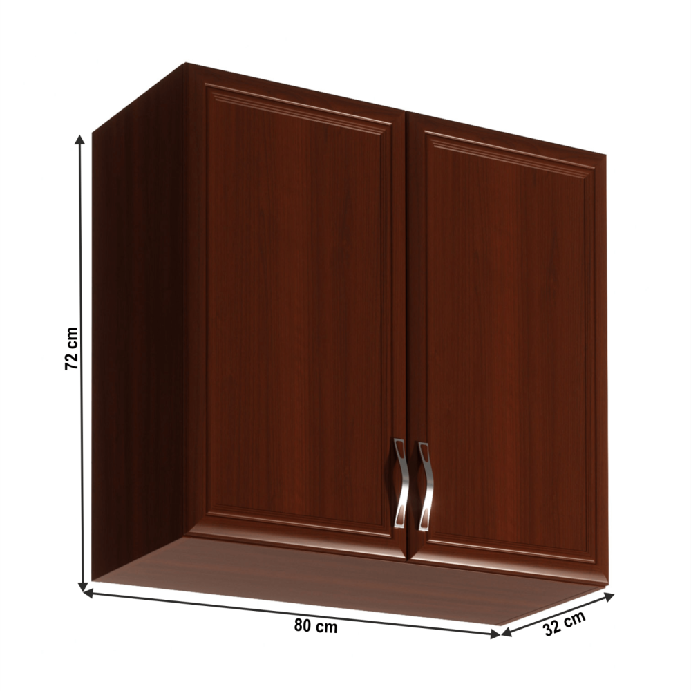 Horní skříňka G80 ke kuchyni SICILIA Provedení: DTD laminovaná / lišty MDF Barva: ořech Milano Rozměry (ŠxHxV): 80x32x72 cm Tloušťka materiálu: 15 mm Spodní skříňky jsou dodávány bez pracovní desky. Můžete si objednat pracovní desku pískovec k provedení ořech Milano - tloušťka 28mm za 1.450 Kč/bm a…