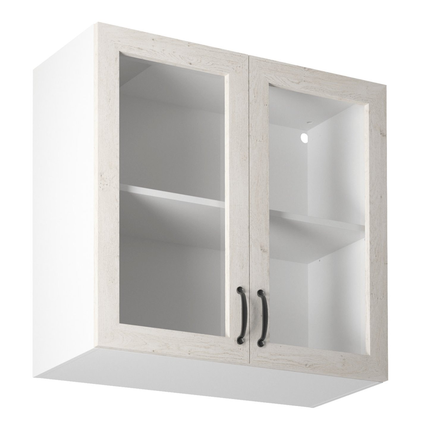 Horní skříňka se sklem, bílá / sosna skandinávská, ROYAL G80S