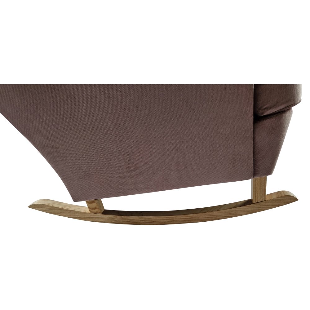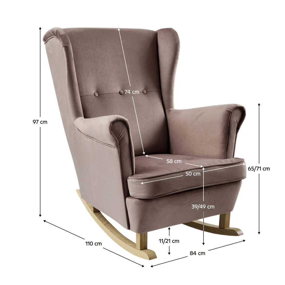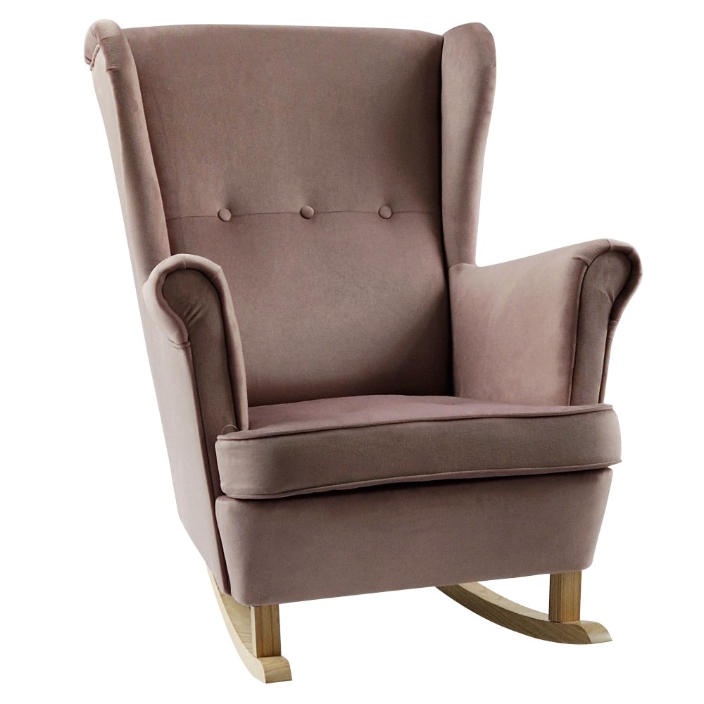 Patří do křesel typu ušák, které se vyznačují pohodlností a jedinečným designem. Opěrka zad je vysoká a tvarovaná, a tak pomáhá předejít bolestem páteře a krku. Unavené ruce si najdou své místo na praktických mohutných opěrkách. Velkou výhodou jsou také boční strany opěradla tkzv. uši, o které si můžete opřít hlavu a relaxovat. Maximální spokojenost při sezení zajišťuje jádro křesla, které je tvořeno PUR pěnou, která vyniká výbornými vlastnostmi. Designové křeslo je celočalouněno látkou Kronos v růžovém barevném provedení, doplněné o ozdobné knoflíky. O stabilitu se postarají houpací nožičky, které jsou vyrobeny ze dřeva v odstínu buk. Odpočiňte si s naším jedinečným houpacím křeslem TEJA.