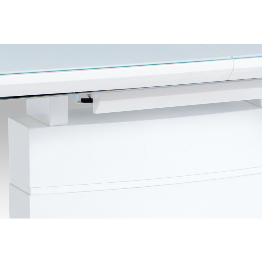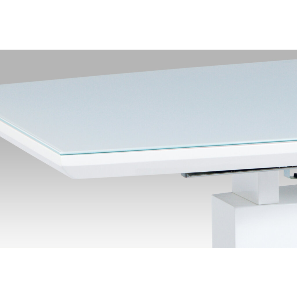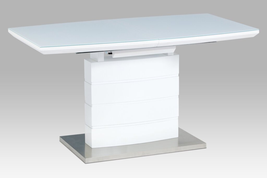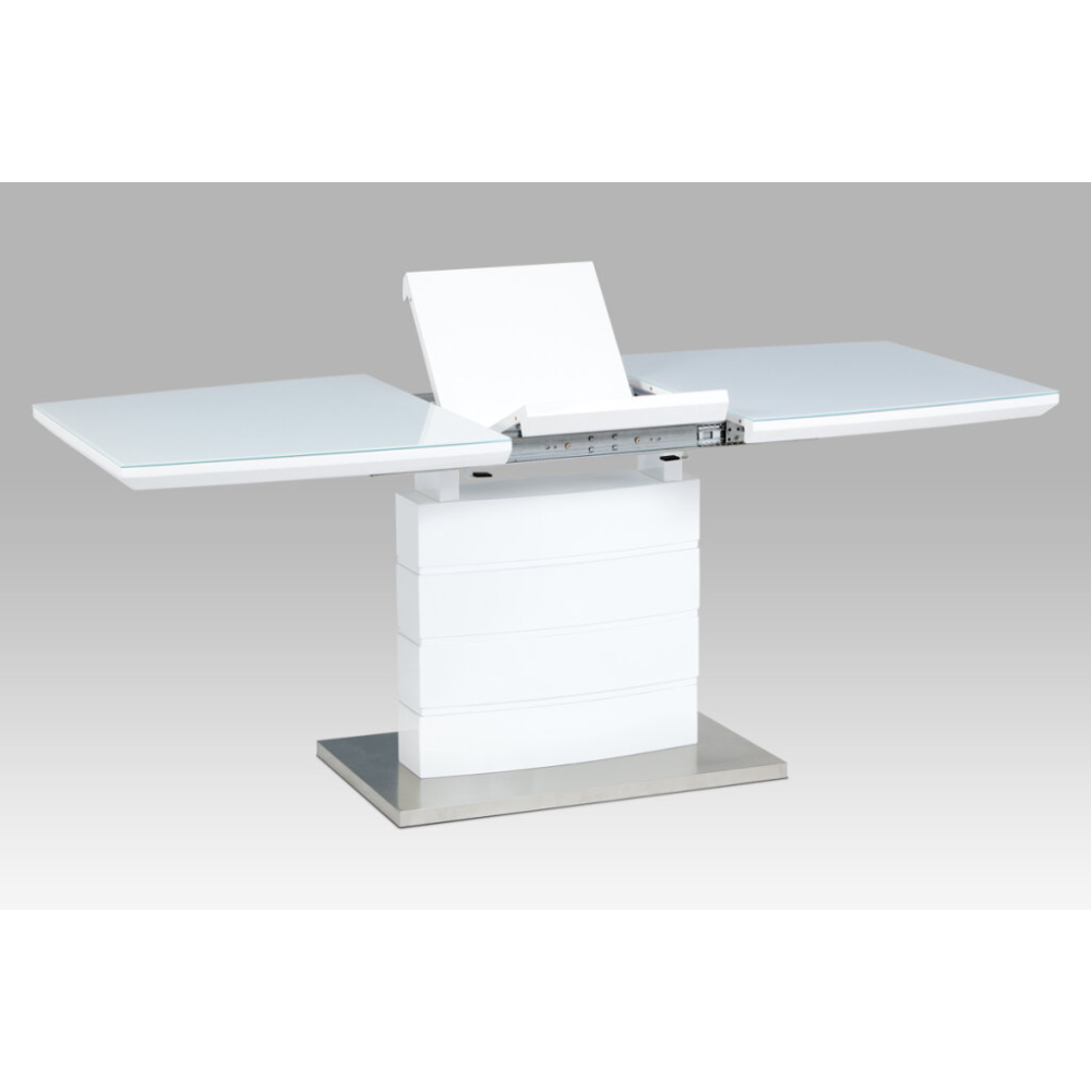 Moderní rozkládací stůl, jehož hlavní deska je vyrobena ze skla o tloušťce 5 cm. Možnost rozložení rozšíří stůl o 40 cm. Podnož stojí na podstavci z broušeného nerezu. Stůl svoji elegancí dokáže ozvlášnit každou domácnost.
