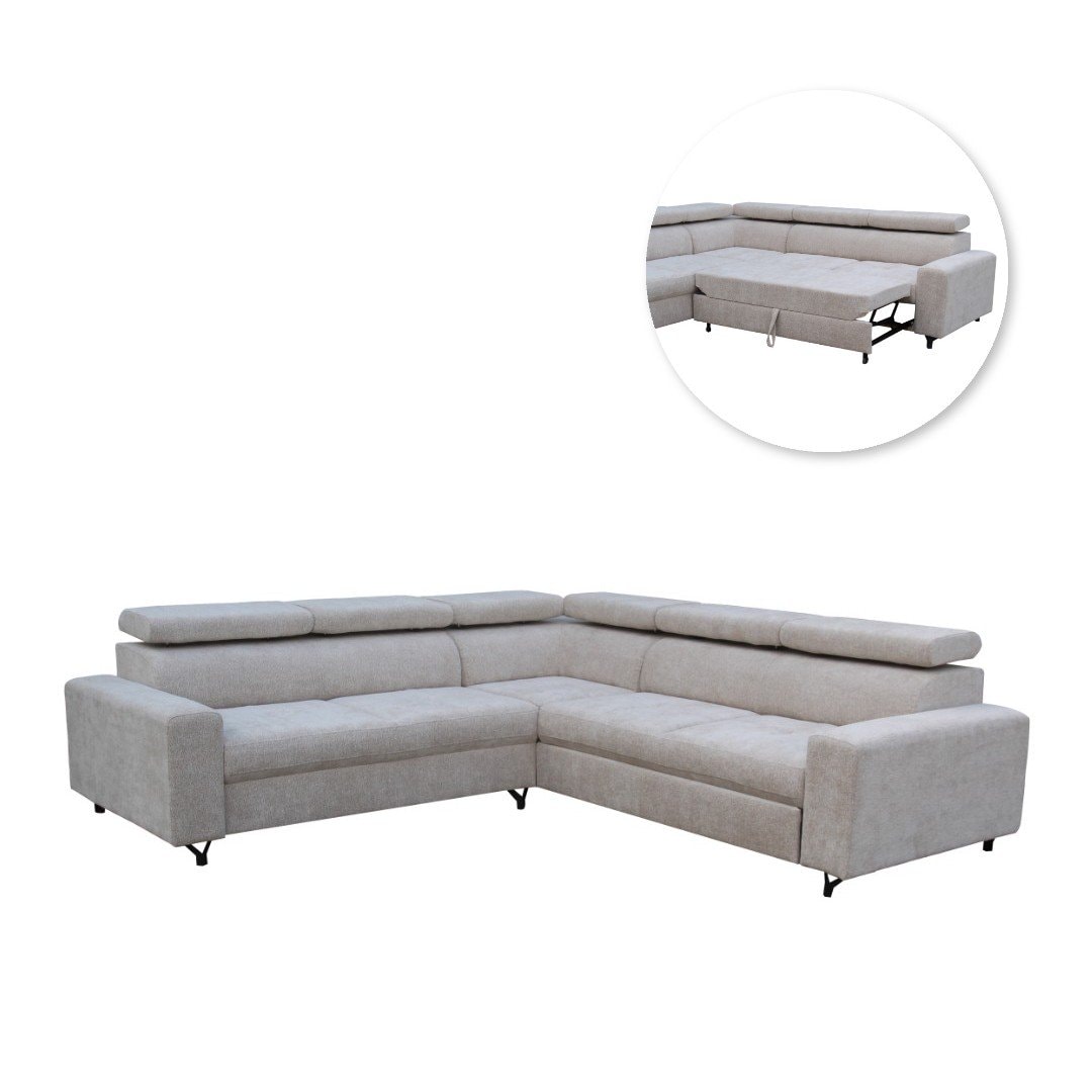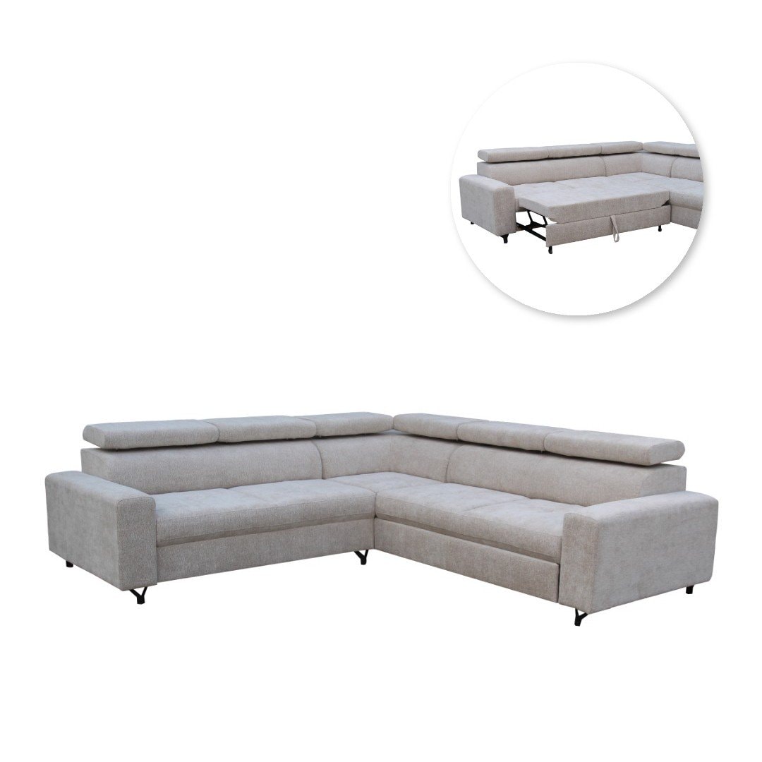 Sedací souprava je vyrobená v pravém provedení (z pozice sedícího). Nabízíme i opačnou variantu. Barva je ve smetanovém tónu látky Misterio 07. Tato látka je hrubá s úpravou Easy Clean - pro snadné čištění, voděodpudivá. Pohodlné sezení zabezpečuje výplň - sedák - vlnitá pružina, PUR pěna, která zajišťuje opravdu velmi vysoký komfort, takže je ideální pro každodenní použití! K pohodlí rovněž přispěje 3x polohovací záhlavník.