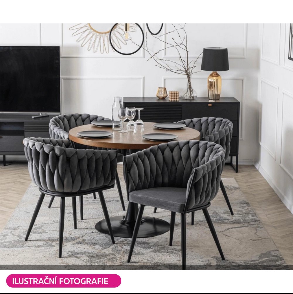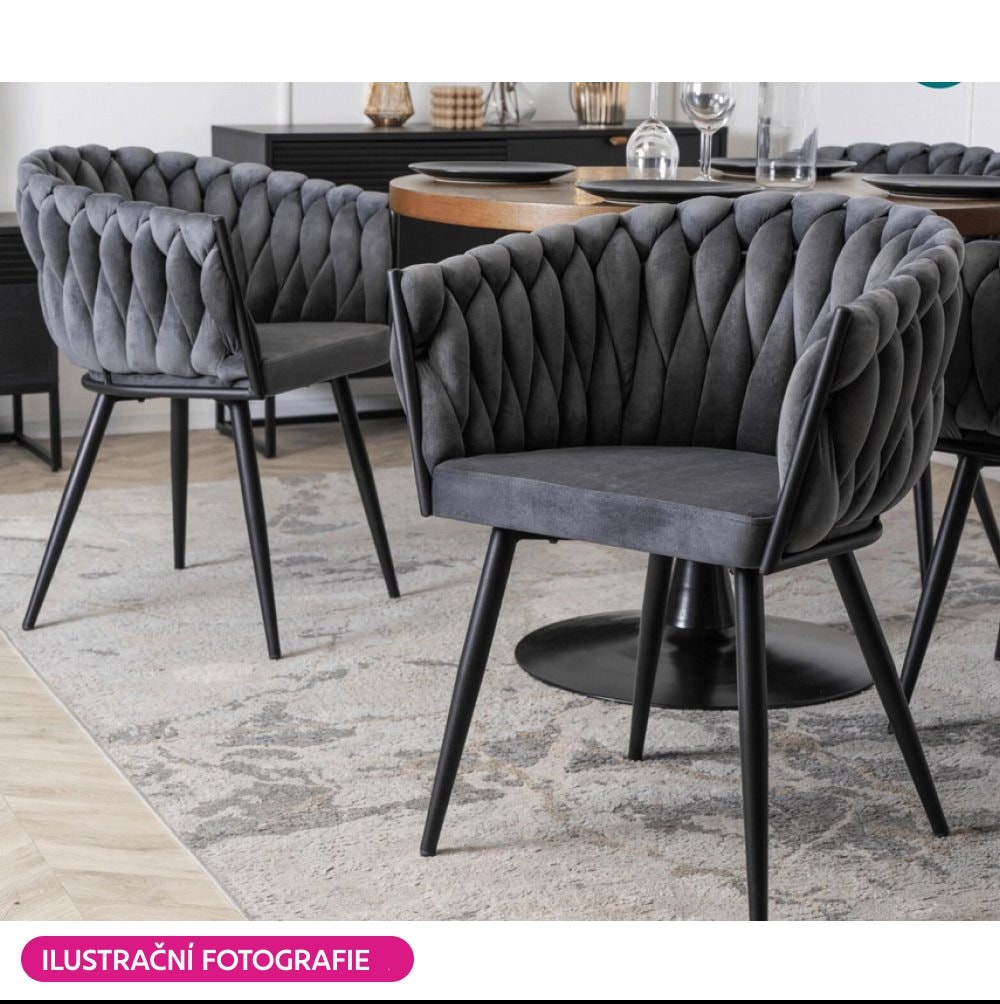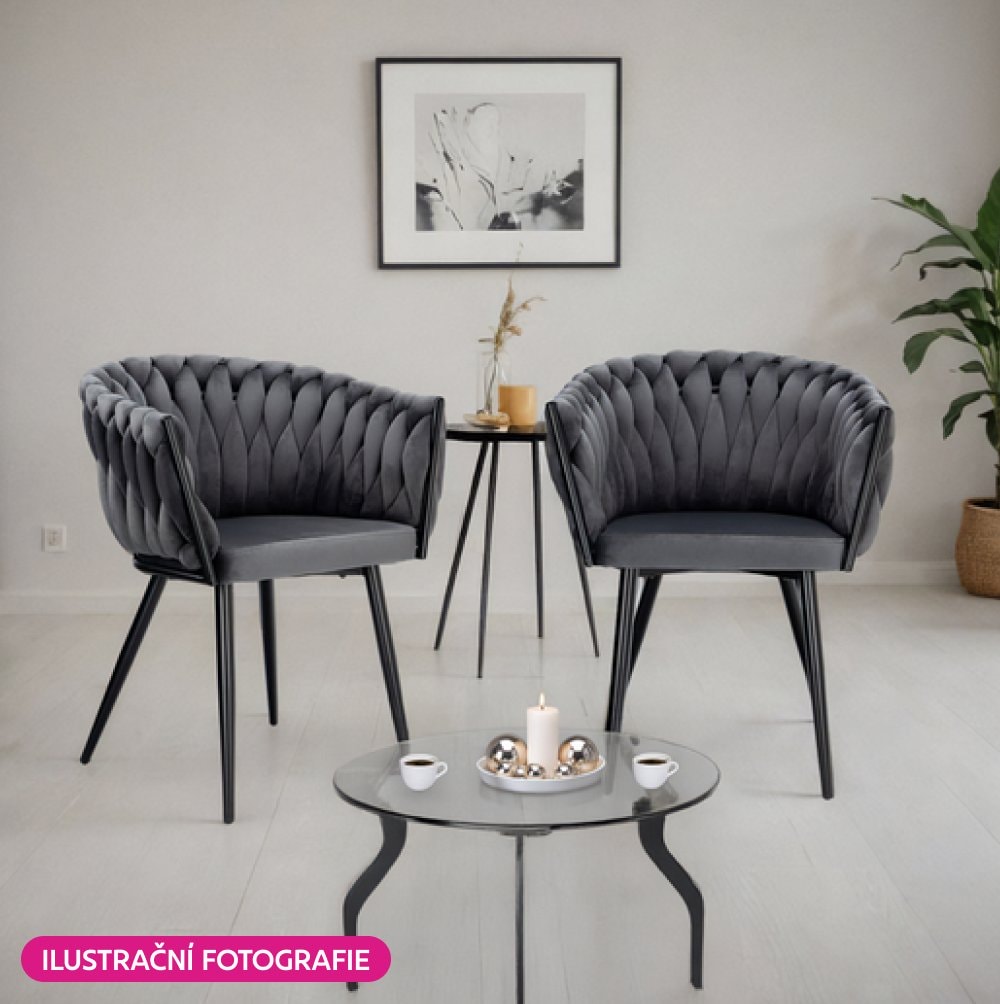 Materiál: látka Velvet/kov Oděruodolnost textilie podle testu Martindale: 80 000 oděrů Barva: tmavě šedá/černá Rozměry (ŠxHxV): 64x55x78 cm Výška sedu: 48 cm Hloubka sedu: 41 cm Šířka sedu: 46 cm Šířka zádové opěrky: 43 cm Výška zádové opěrky: 33 cm Nosnost: 100 kg Kovová konstrukce Designové…