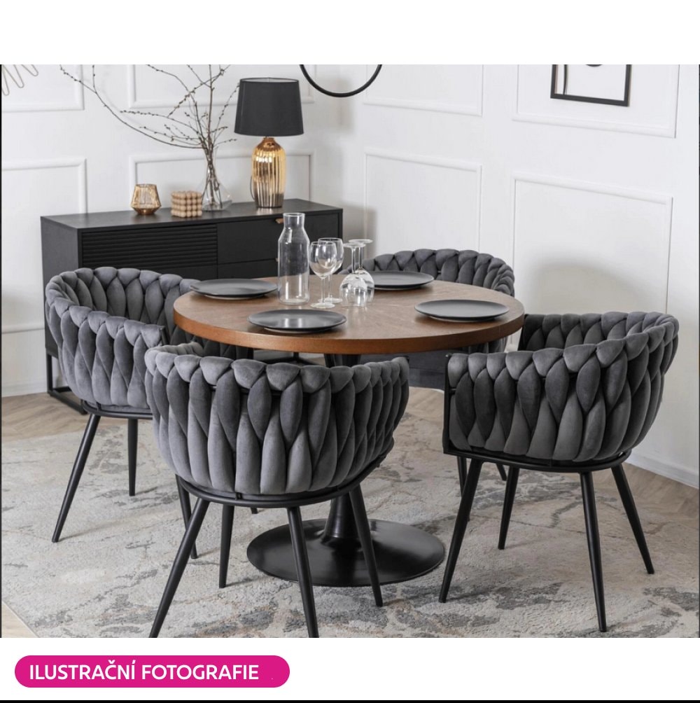 Křeslo je potaženo elegantním potahem vyrobeným z kvalitní sametové Velvet látky v provedení tmavě šedá . Stojí na čtyřech černých kovových nohách, které křeslu dodávají stabilitu. Zádová opěrka a opěrky na ruce jsou dekorativně prošívané, což působí velmi elegantně a honosně. Křeslo BLER upoutá vaši pozornost nejen designem, ale také detailním zpracováním.