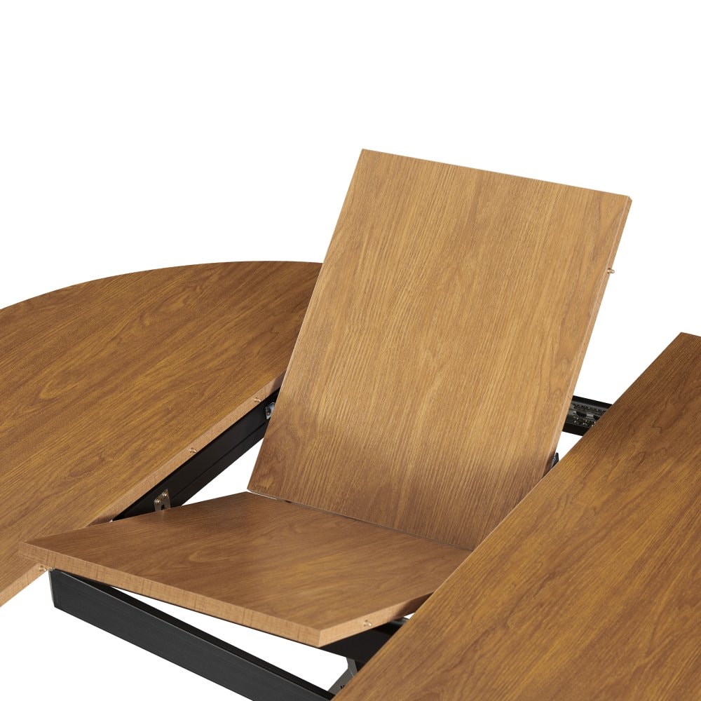 Materiál deska stolu: MDF Barva: dub světlý Konstrukce nohy: kov Barva: černá Rozměry (ŠxHxV): 100x100-140x75 cm Tloušťka materiálu vrchní desky: 1,8 cm Kulatý Praktický Vhodný pro 4-6 osob Nosnost: 25 kg Dodáváno v demontu