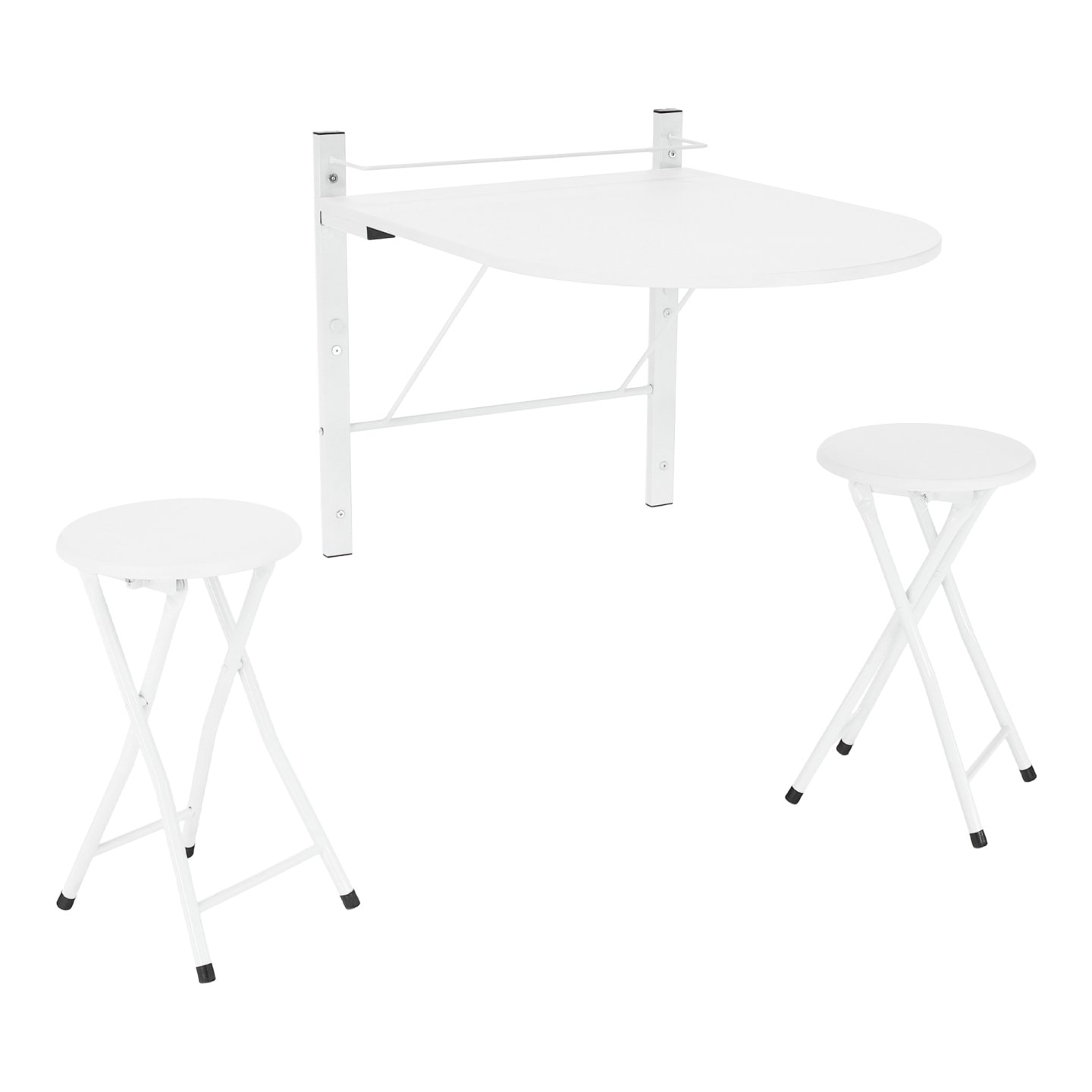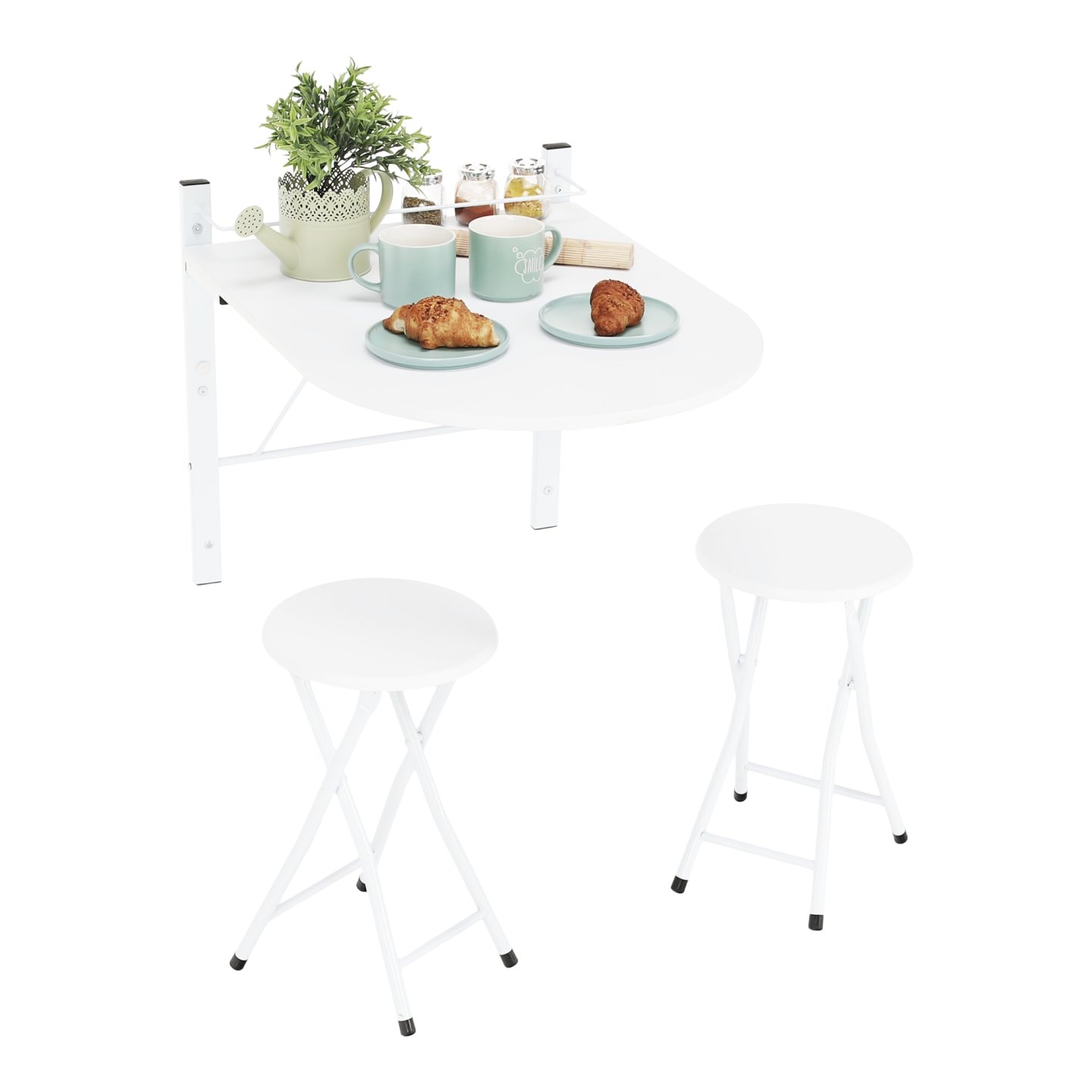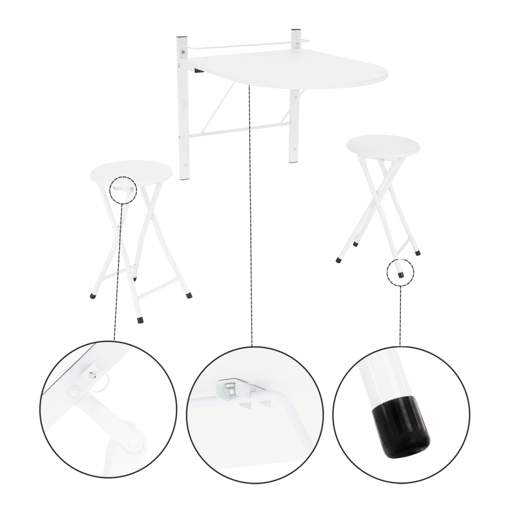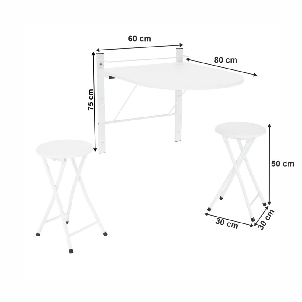 Praktický jídelní set skvělý do menších prostor. Obsahuje jeden stůl a dvě židle - taburety. Materiál: MDF + kov, provedení: bílá, rozměry ŠxHxV: stůl: 60x80x75 cm, židle: 30x30x50 cm. Nosnost židle: 80 kg Nosnost stolu: 15 kg Tloušťka materiálu: 15 mm Vhodný pouze do interiéru Možnost dokoupení…