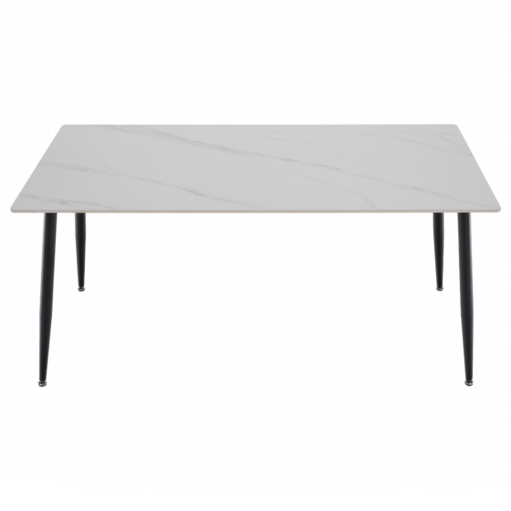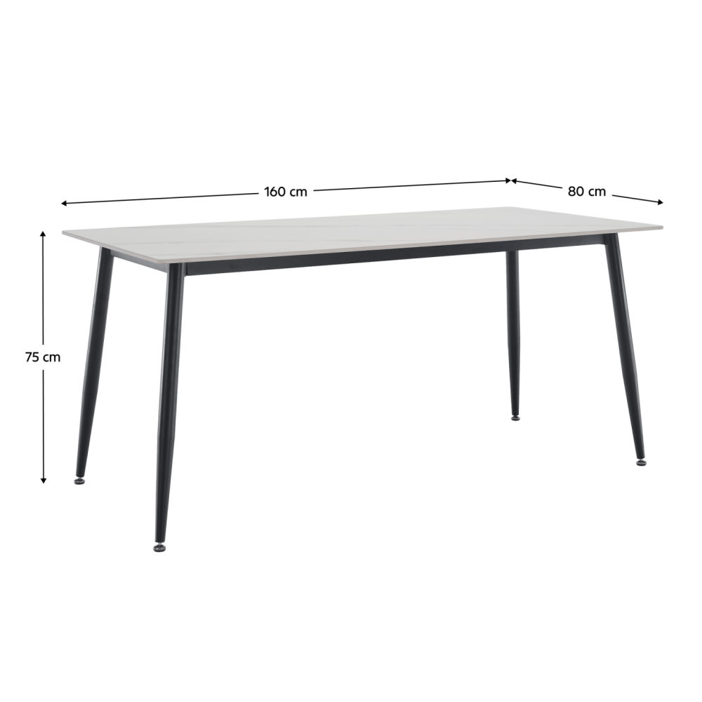 Materiál: kámen/ocel Barva: bílý mramor/černá Rozměry (ŠxHxV): 160x80x75 cm Tloušťka kamenného platu: 1,1 cm Nosnost: 60 kg Praktický Moderní design Vhodný pro 6-8 osob Dodáváno v demontu