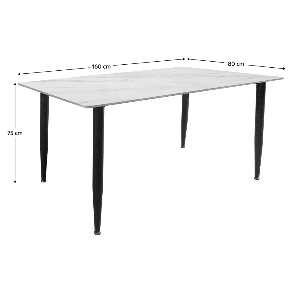 Jídelní stůl, bílý mramor/černá, 160x80 cm, FLORENC TYP 2