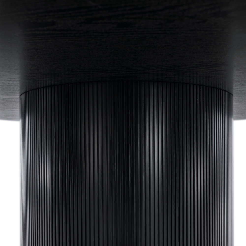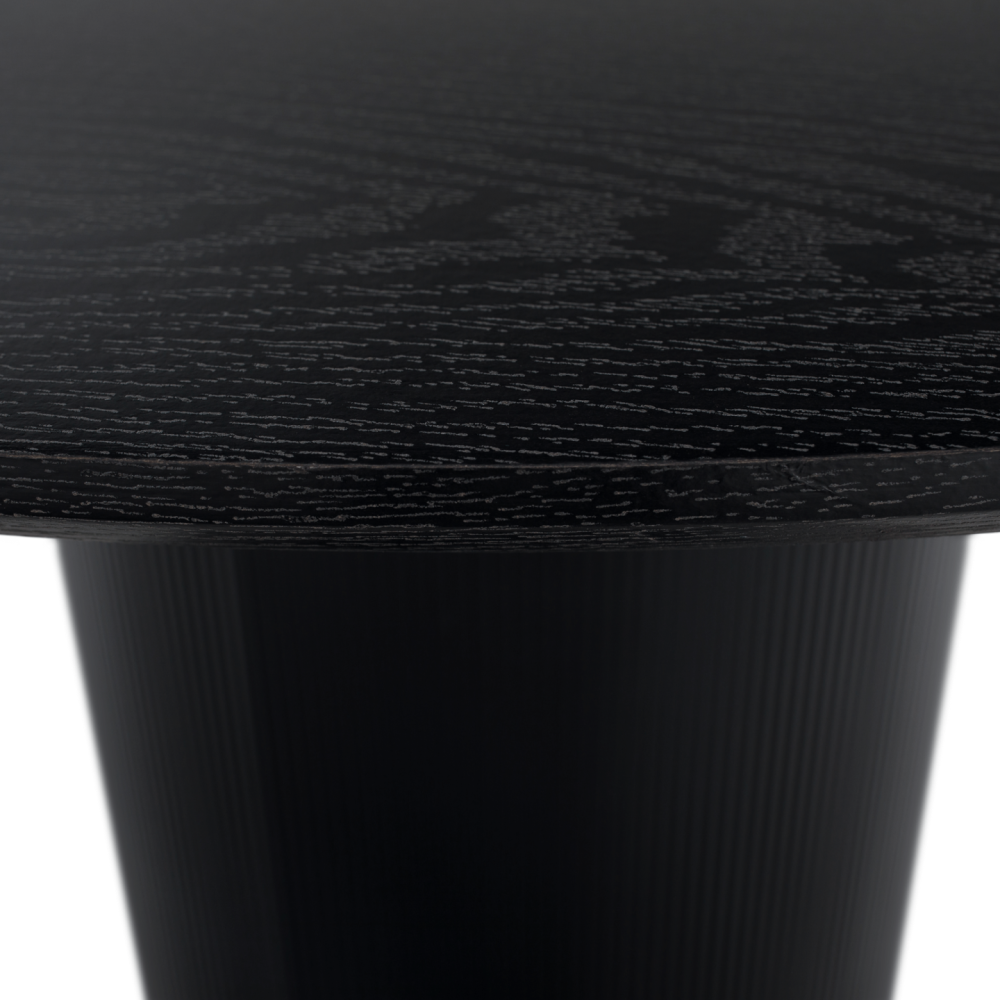Svým originálním a promyšleným designem se stává neodmyslitelným doplňkem moderního interiéru. Je kulatý, vyroben z dýhované MDF v černé barvě. Konstrukce je také v černém provedení. Stylový a elegantní.