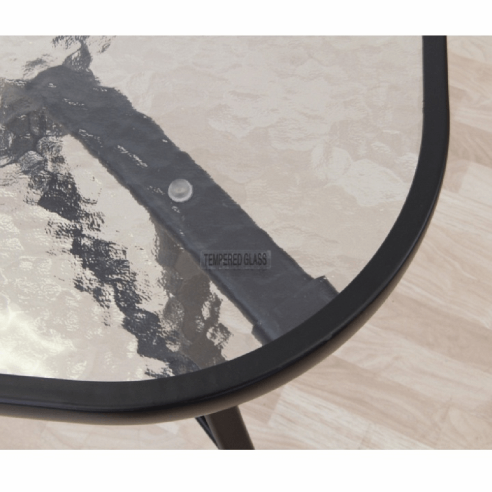Stůl PASTER je vyroben z kvalitního tvrzeného skla a černé oceli.