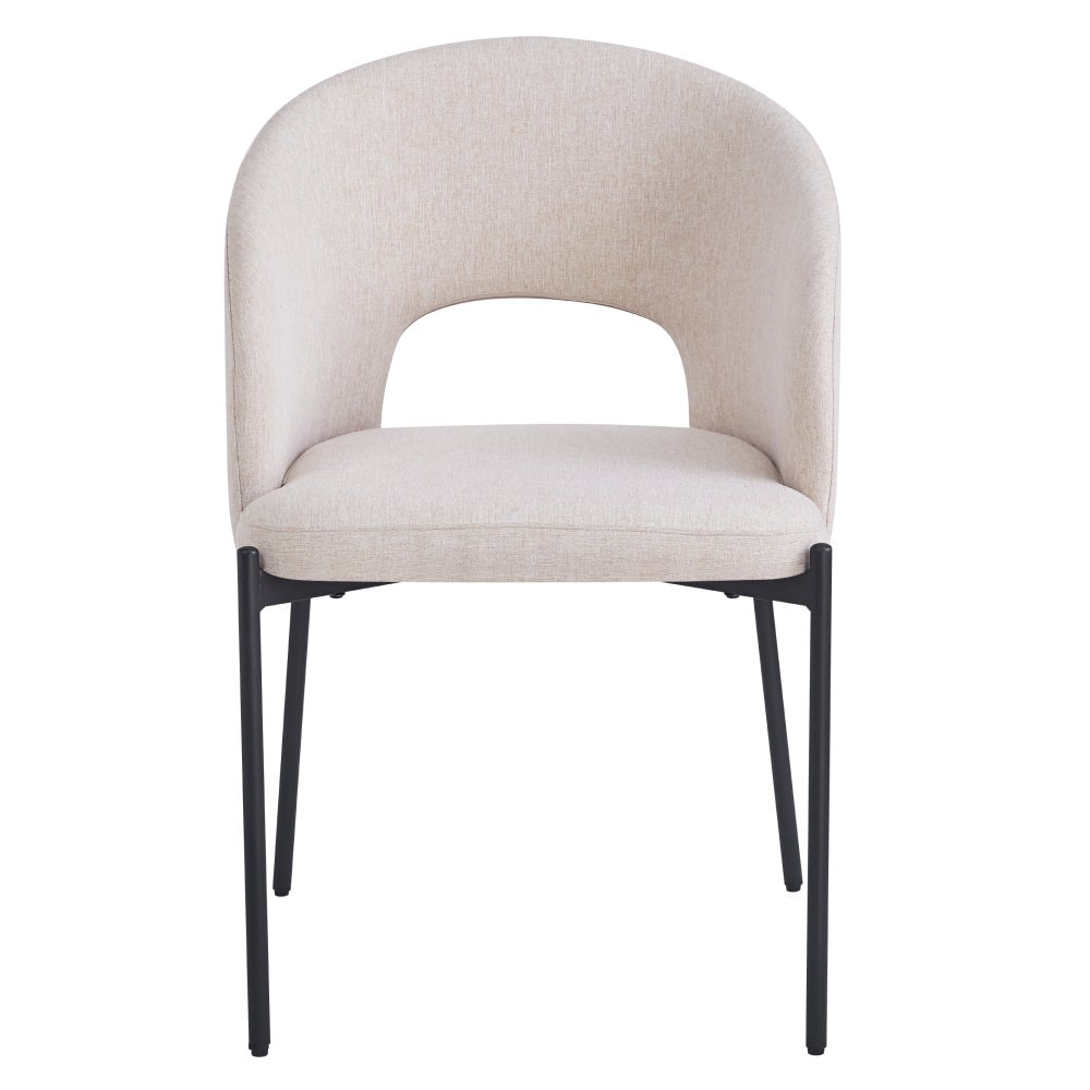 Díky svému elegantnímu designu dokonale zapadne do vaší jídelny či kuchyně. Židle je čalouněna látkou v béžovém provedení a doplněna o černé kovové nožičky, které jí dodávají stabilitu. Zaoblené opěradlo s moderním výřezem spolu s opěrkami na ruce poskytuje stylový vzhled i dokonalou oporu vašim zádům. Židle LONKA vám zaručuje maximální komfort sezení.