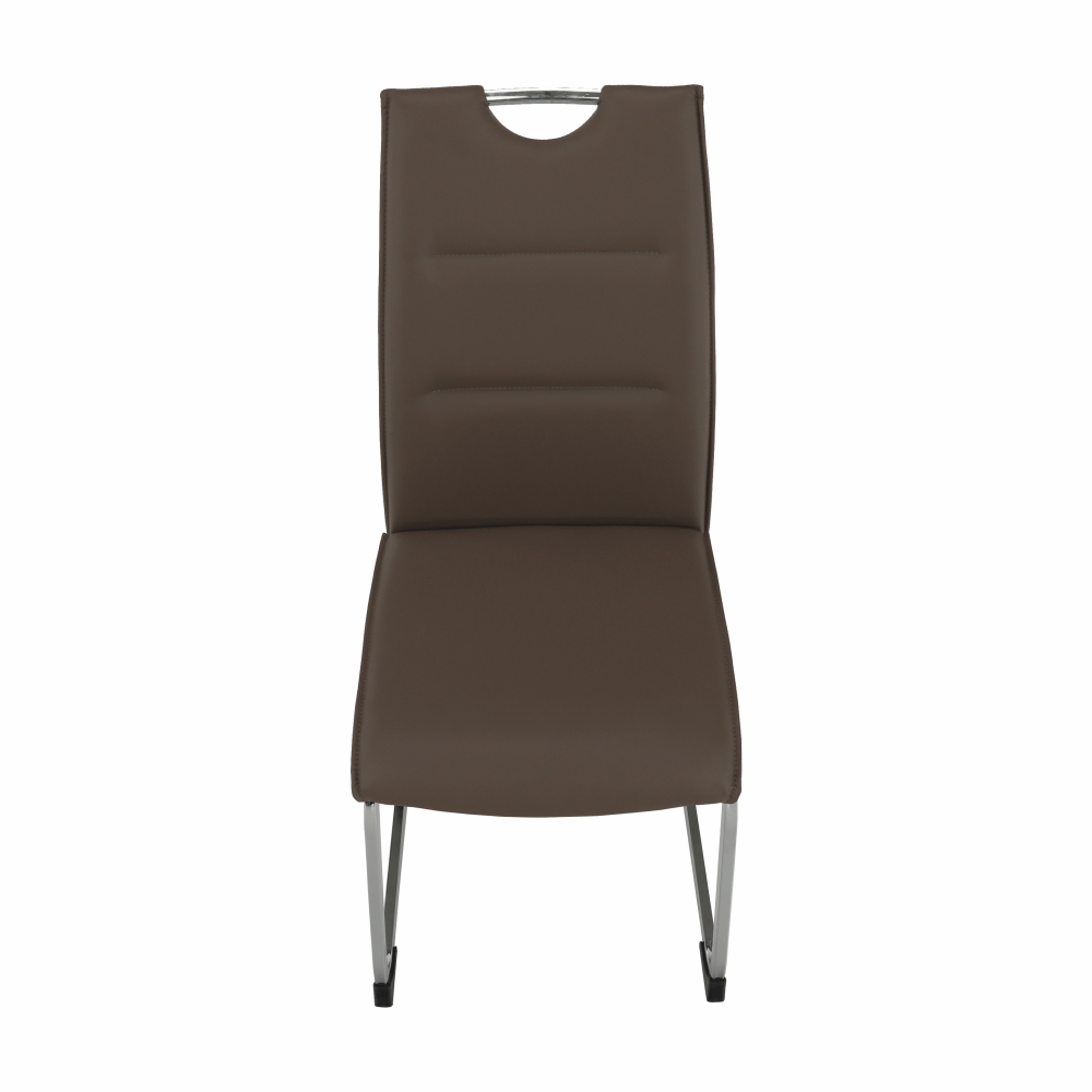 Pyšní se elegantním provedením v hnědé ekokůži. Stabilitu zajišťuje kvalitní chromová konstrukce. To vše vám nabízí tato moderní kráska. Občas si potřebujeme dopřát trochu relaxu u stolu. Oživení jídelny pěknými a vkusnými židlemi je jeden z krůčků, které nám zaručí pocit spokojenosti v kruhu rodiny.
