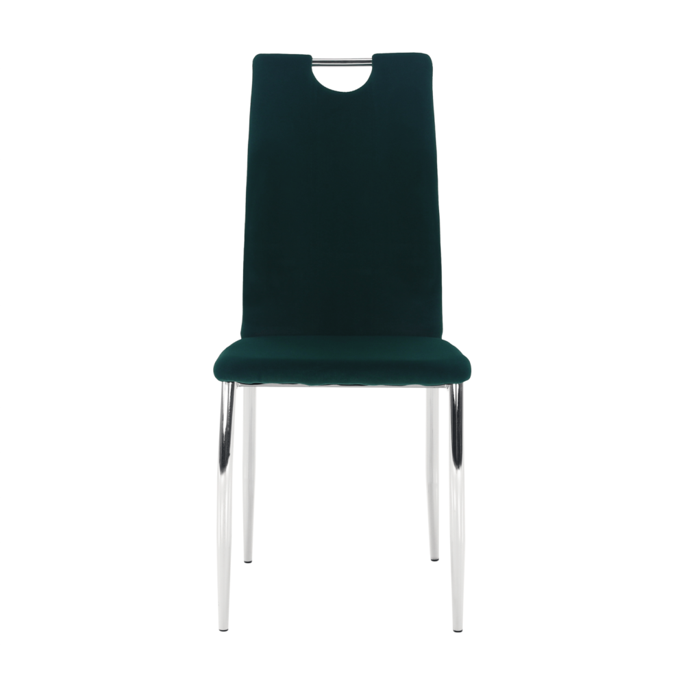 Smaragdová působí luxusním dojmem, který dodá vaší kuchyni, restauraci nebo jinému zařízení ten správný šmrnc. Židle je vyrobena z kvalitní látky příjemné na dotek. Pocit jistoty vám dodají stabilní chromové nohy a nosnost do 110 kg.