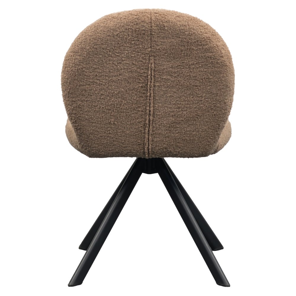 Jídelní židle RODIA je ztělesněním moderního komfortu s důrazem na styl. Nadčasové spojení světlohnědé látky Bouclé a stabilní kovové podstavy v černém provedení vytváří harmonický kontrast, který zaujme v každém interiéru. Otočný mechanismus zajišťuje praktický komfort a umožňuje pohyb s lehkostí a přirozeností. Ideální k relaxaci při oblíbeném jídle, kávě či odpočinku. RODIA přinese do vaší jídelny nejen eleganci, ale i útulnou atmosféru, protože skutečný domov nezačíná u dveří, ale u stolu.