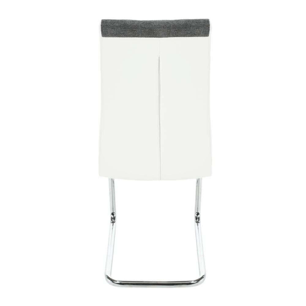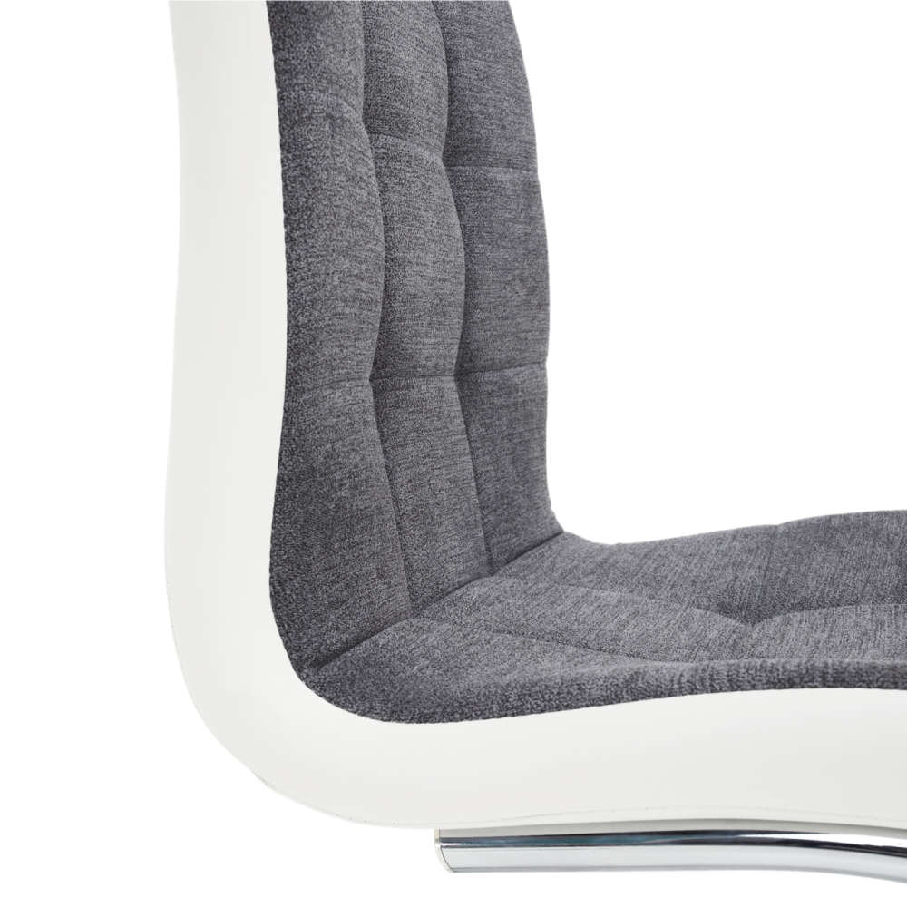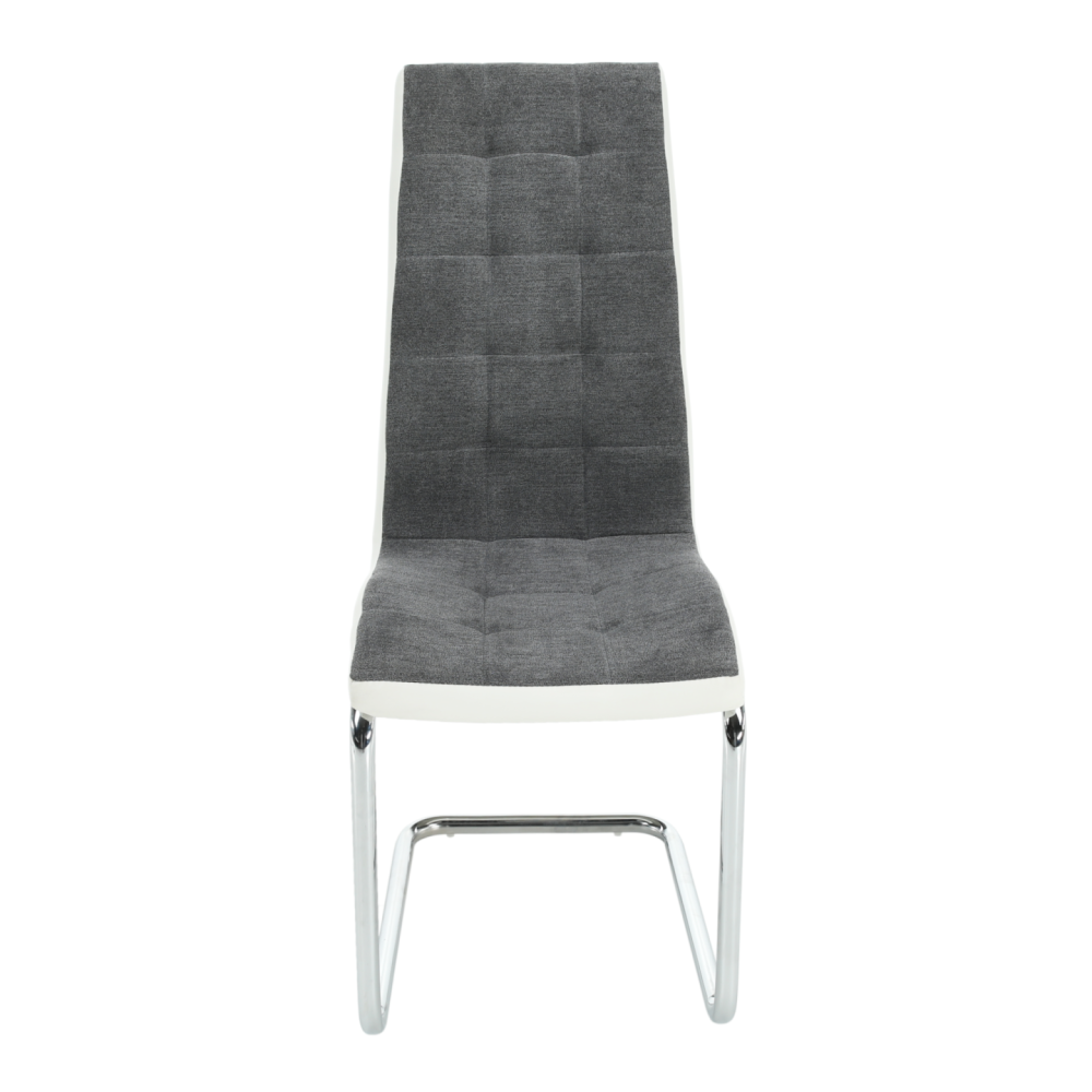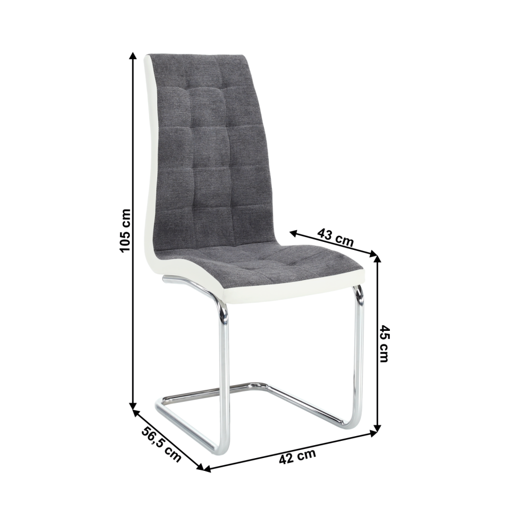 Jídelní židle SALOMA NEW Materiál: látka / ekokůže / chrom v barevném provedení tmavě šedá a bílá., Oděruodolnost textilie podle testu Martindale: 50 000/100 000 oděrek Rozměry (ŠxHxV): 42x56,5x105 cm Nosnost: 110 kg