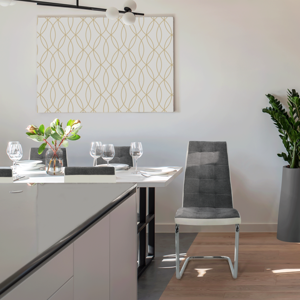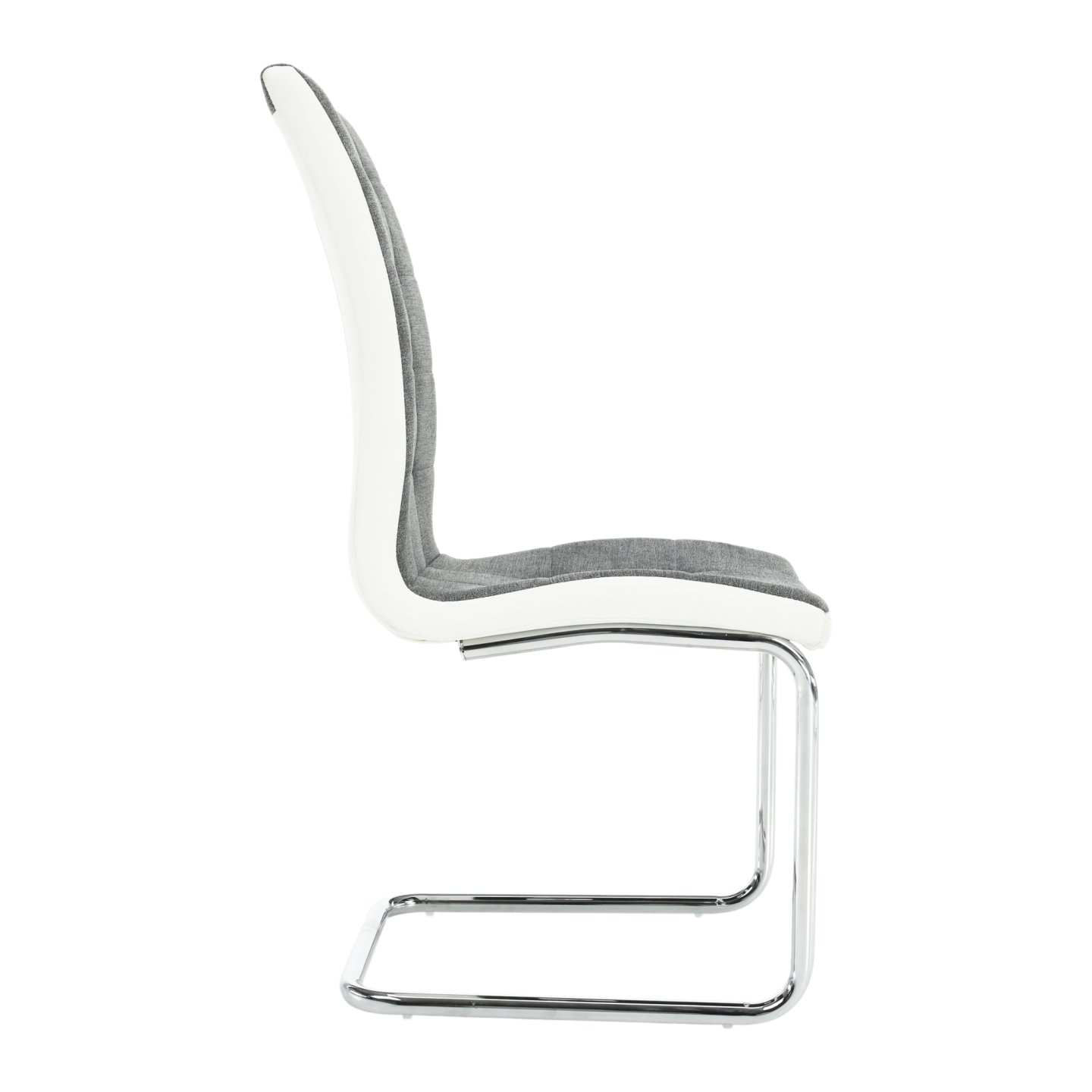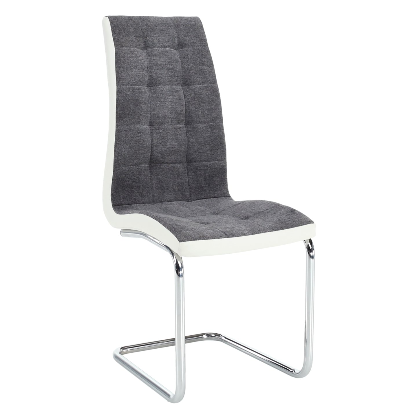 Jídelní židle SALOMA NEW Materiál: látka / ekokůže / chrom v barevném provedení tmavě šedá a bílá., Oděruodolnost textilie podle testu Martindale: 50 000/100 000 oděrek Rozměry (ŠxHxV): 42x56,5x105 cm Nosnost: 110 kg