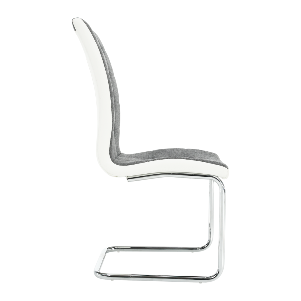 Jídelní židle, tmavě šedá látka / ekokůže bílá / chrom, SALOMA NEW