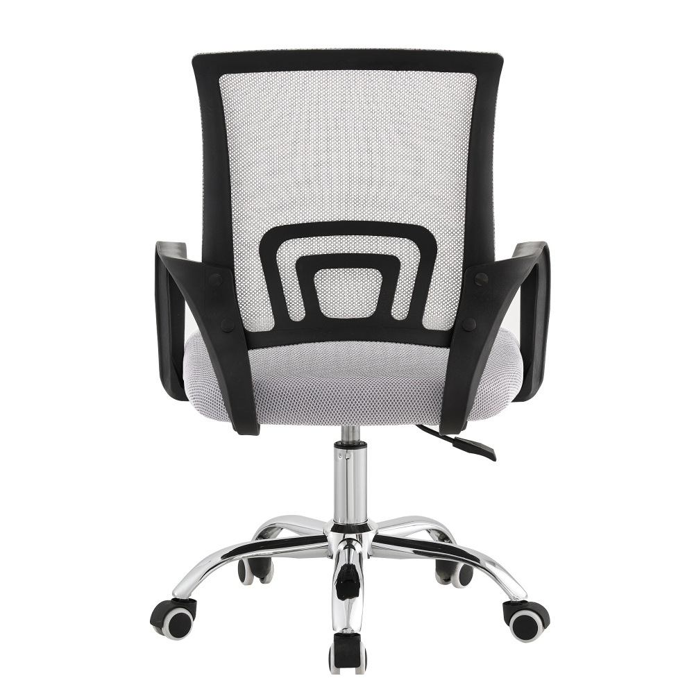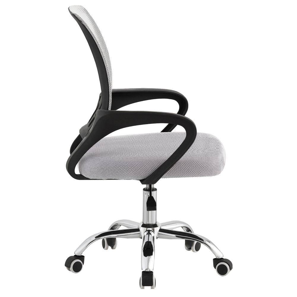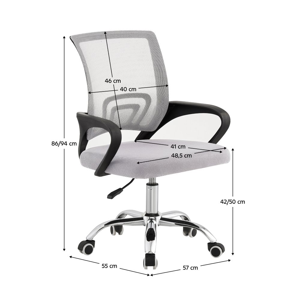 Na čalounění byla použita kvalitní látka a síťovina barvy šedé. Kovová podnož je pochromovaná. Područky jsou vyrobeny z plastu. Výšku sedu si můžete jednoduše regulovat mechanismem umístěným pod sedadlem. Pogumovaná kolečka jsou vhodné na plovoucí i dřevěné podlahy.